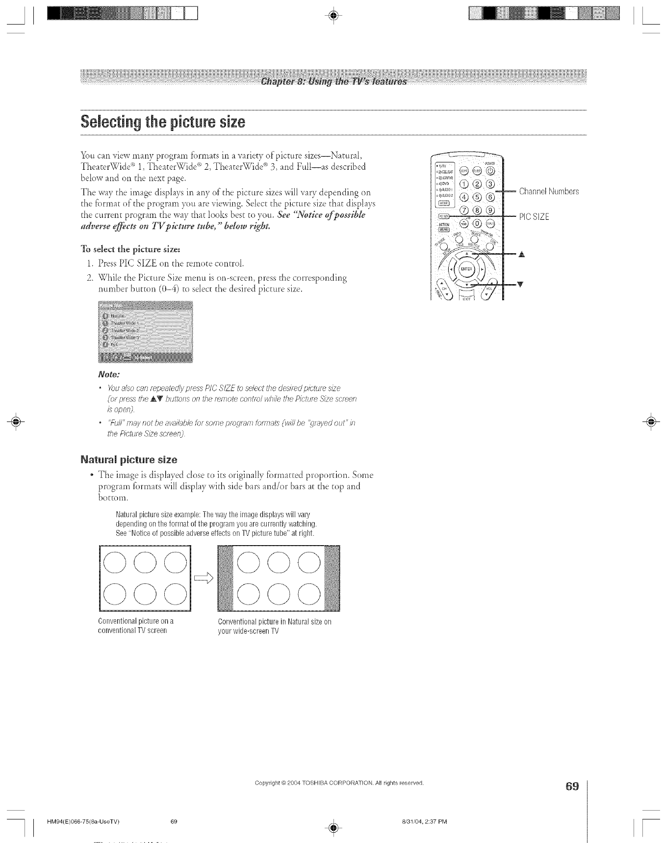Picture size selection ..............................................................69
