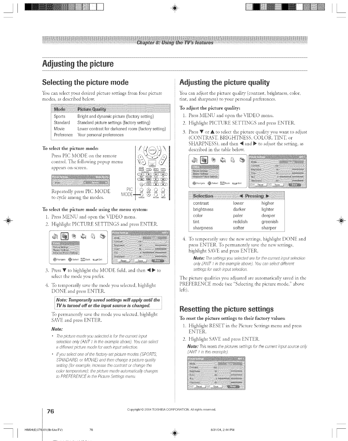 Picture adjustments: