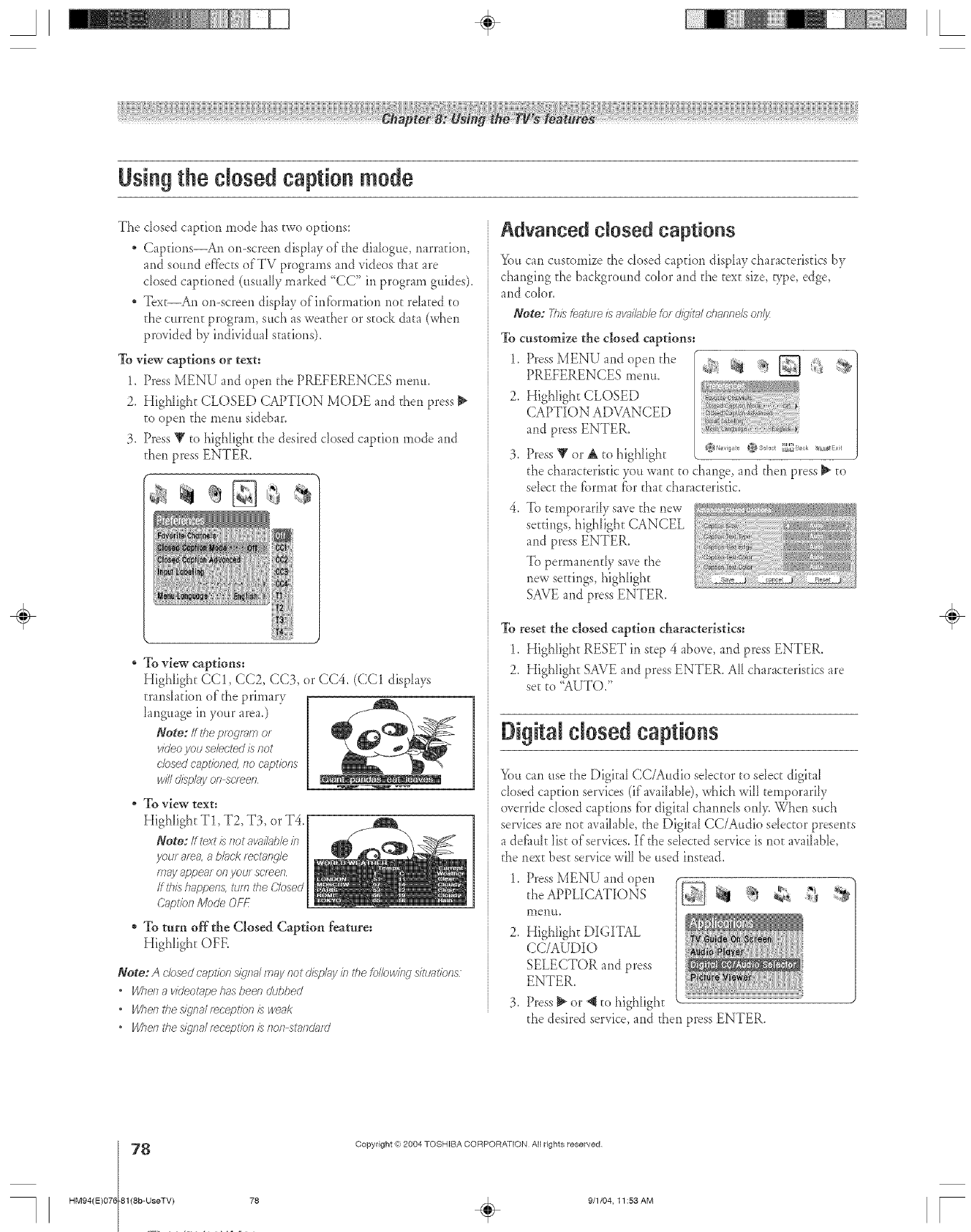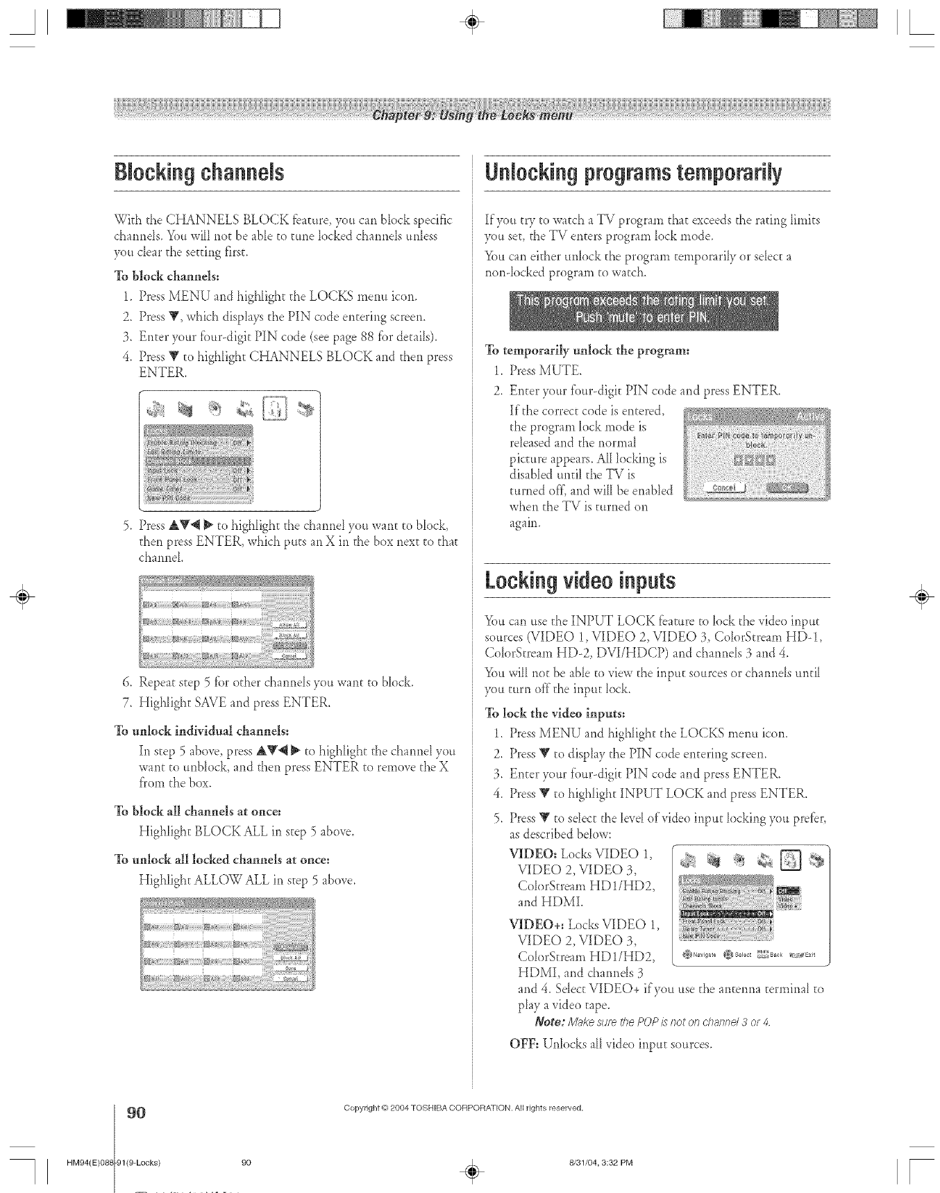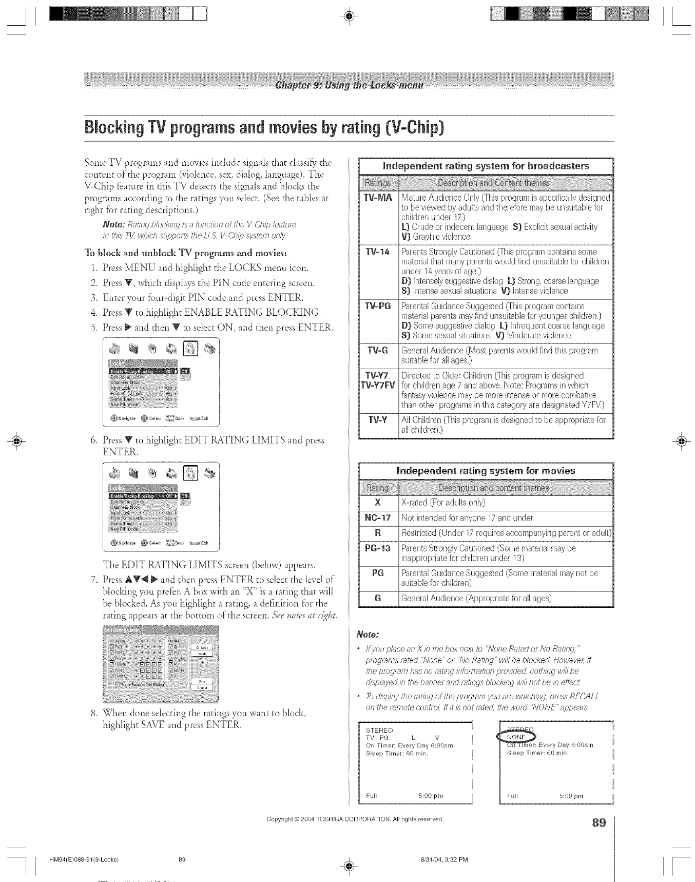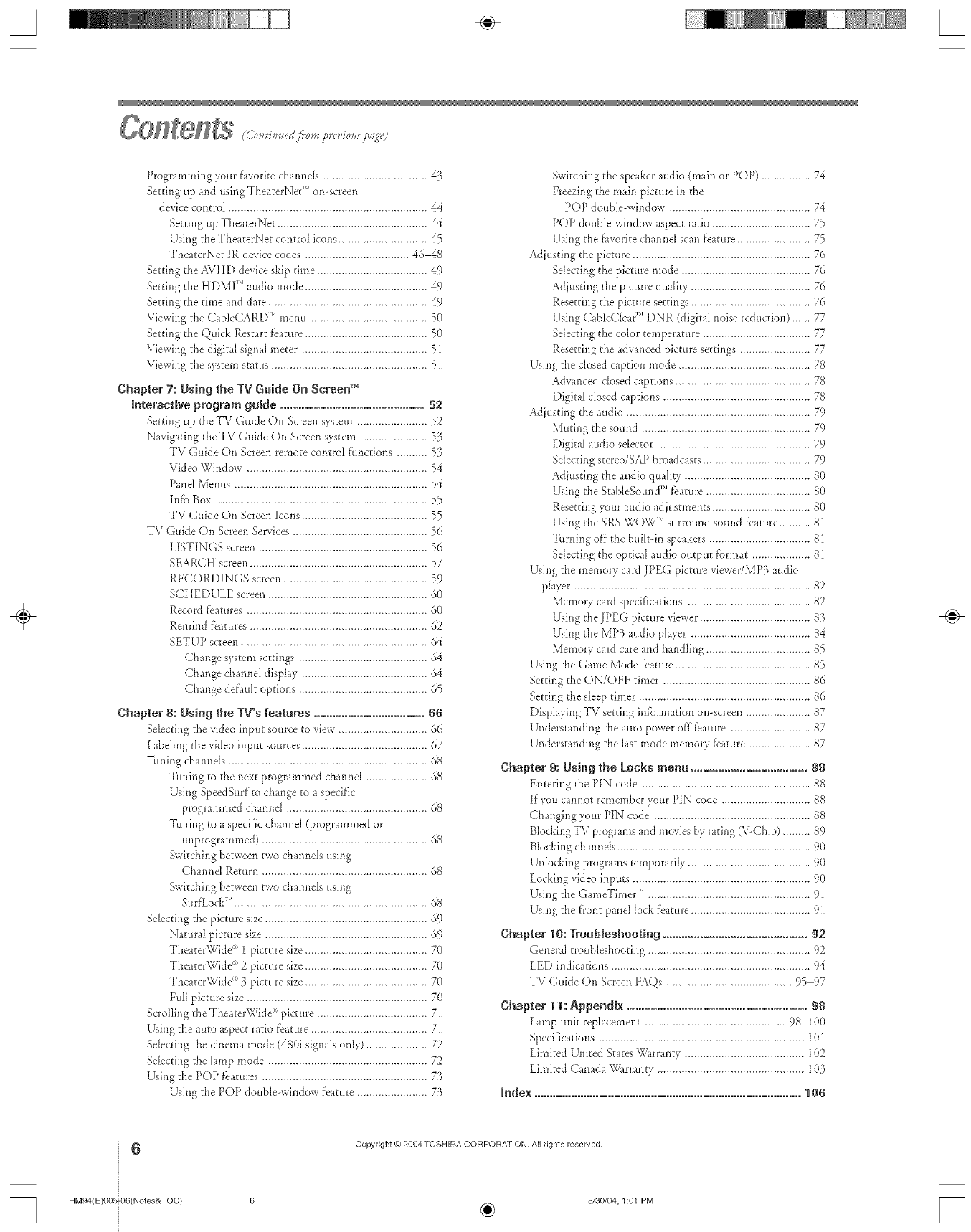 V-Chip bIocking (Locks menu) ....................................89-90