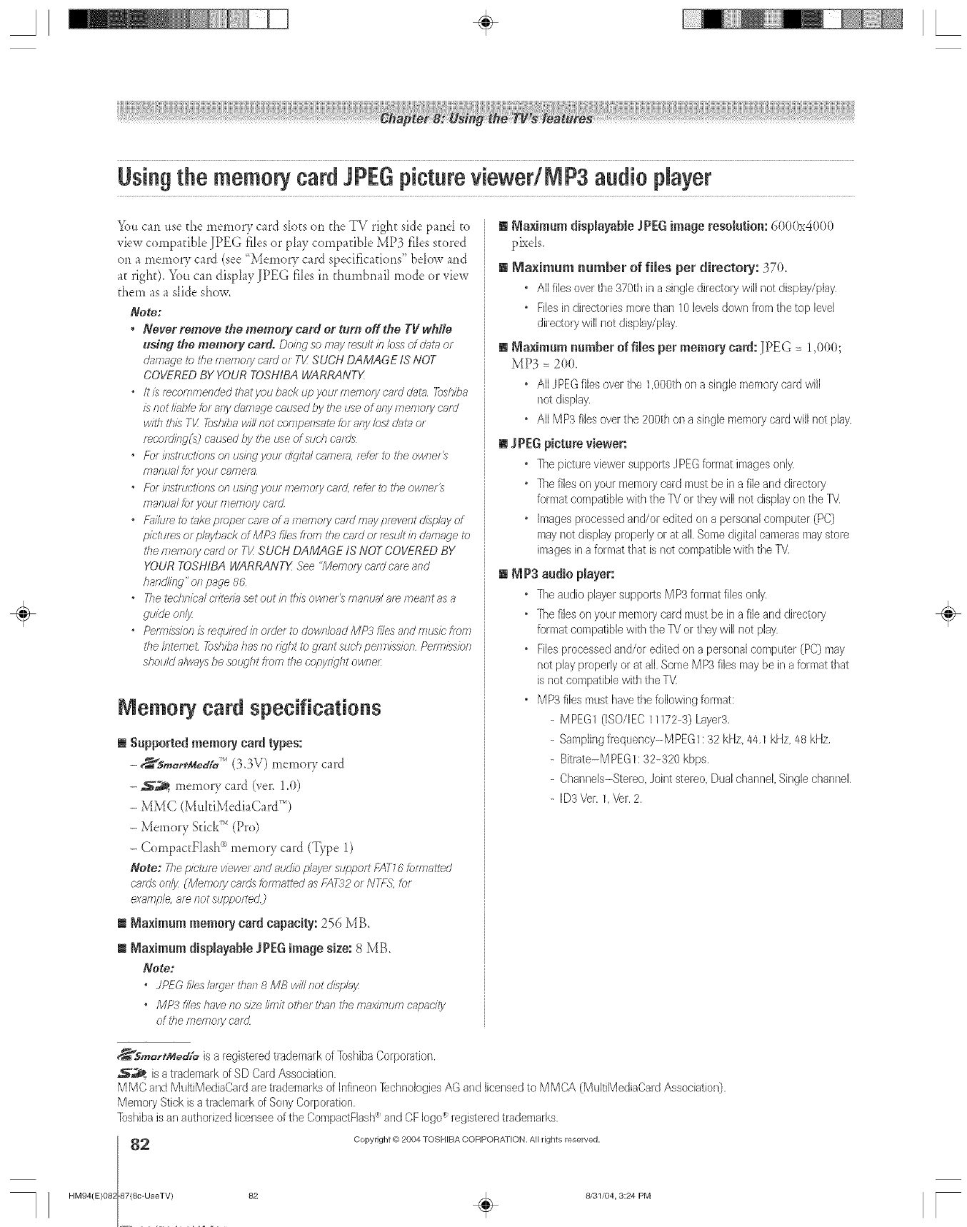 SmartMedia isa registered trademark of Toshiba Corporation