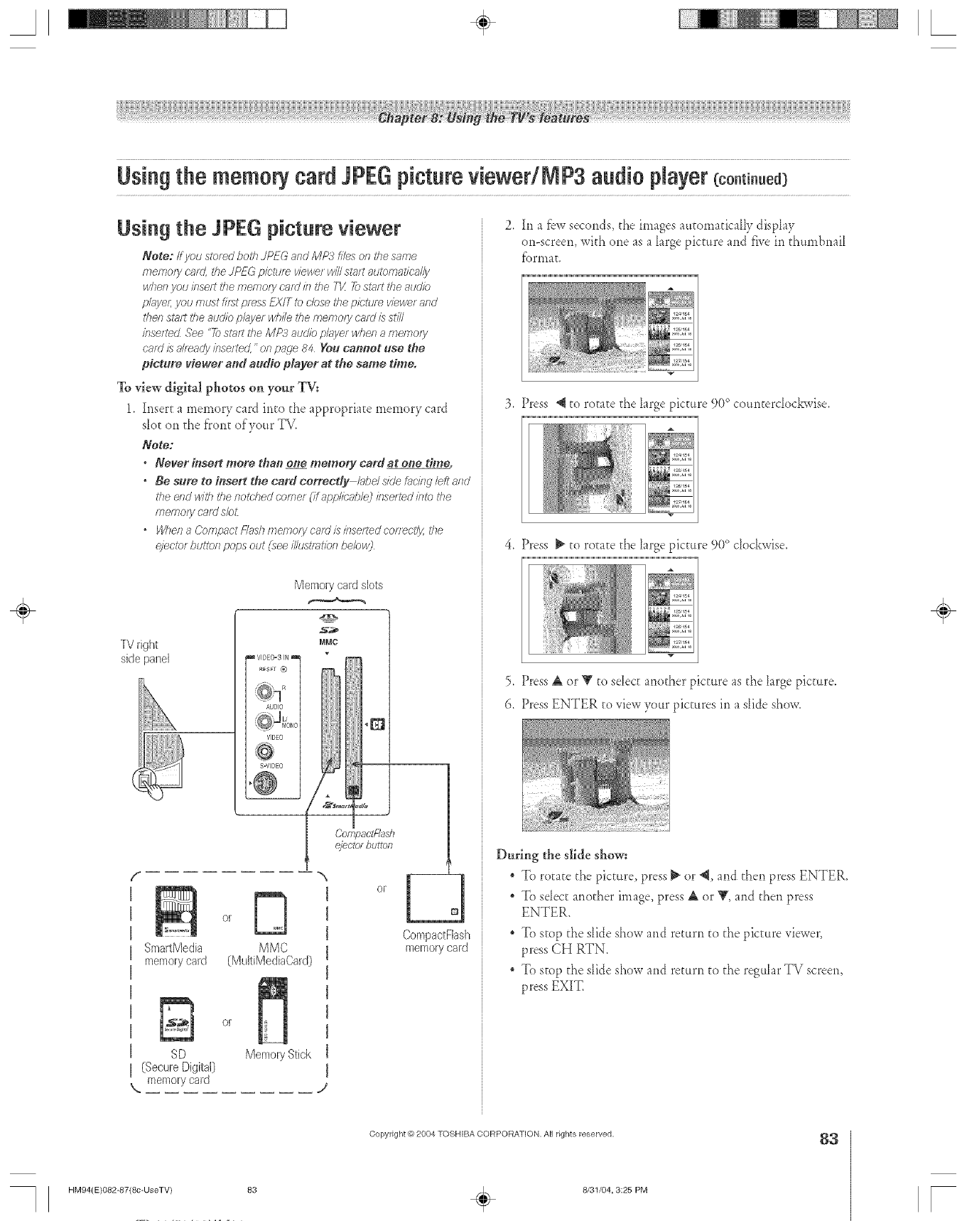 SmartMedia T_'memory cards ..............................................82
