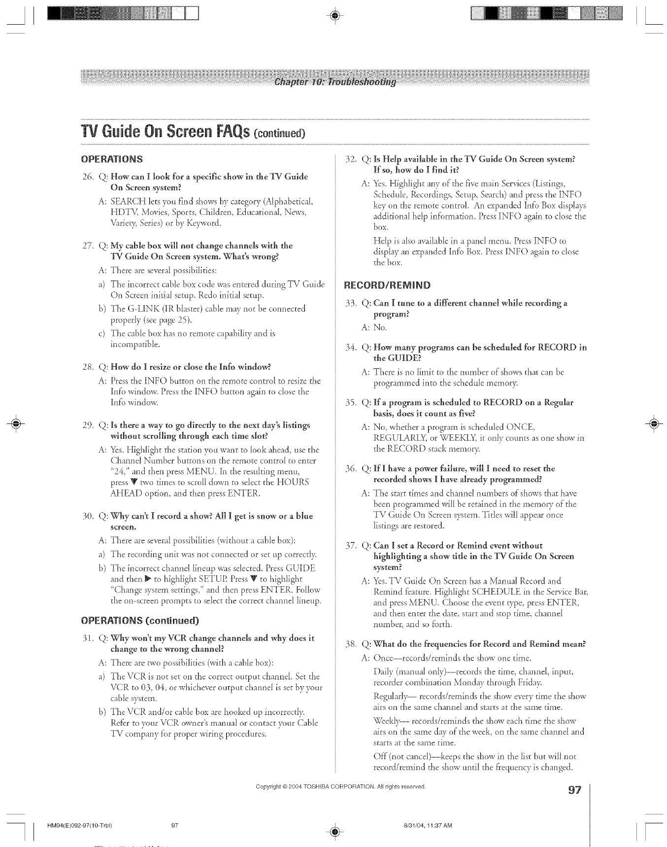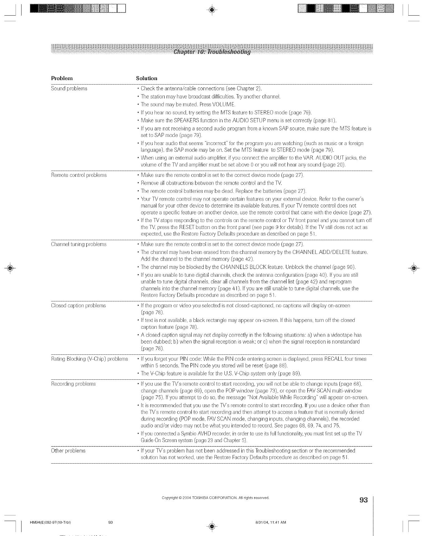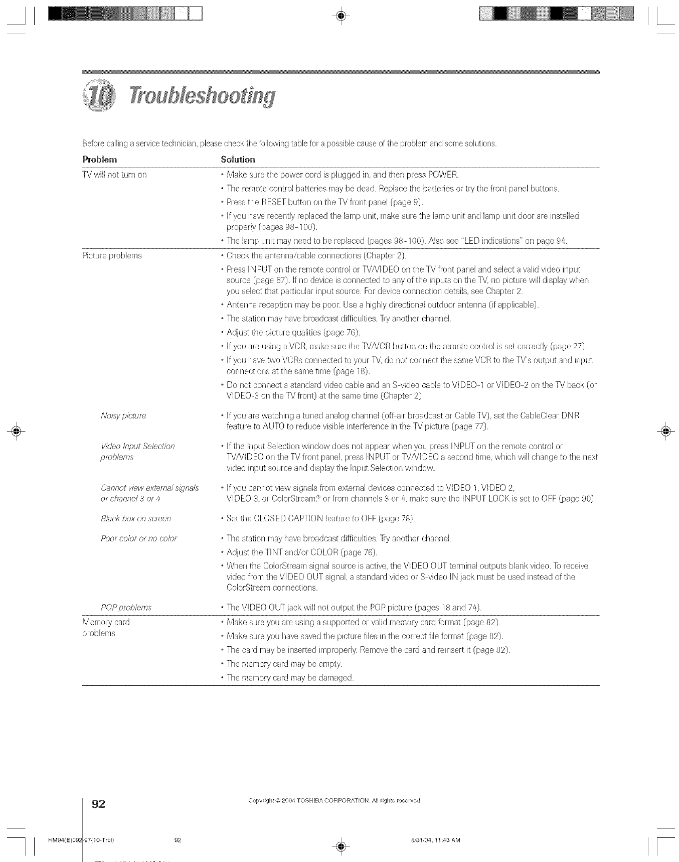 Problems with TV ..............................................................92-97