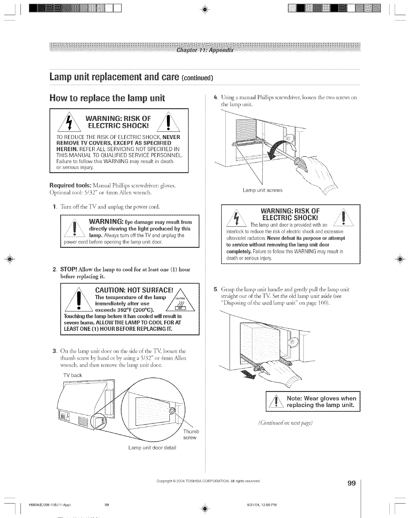 picture, at which time you should rephce the lamp unit; and