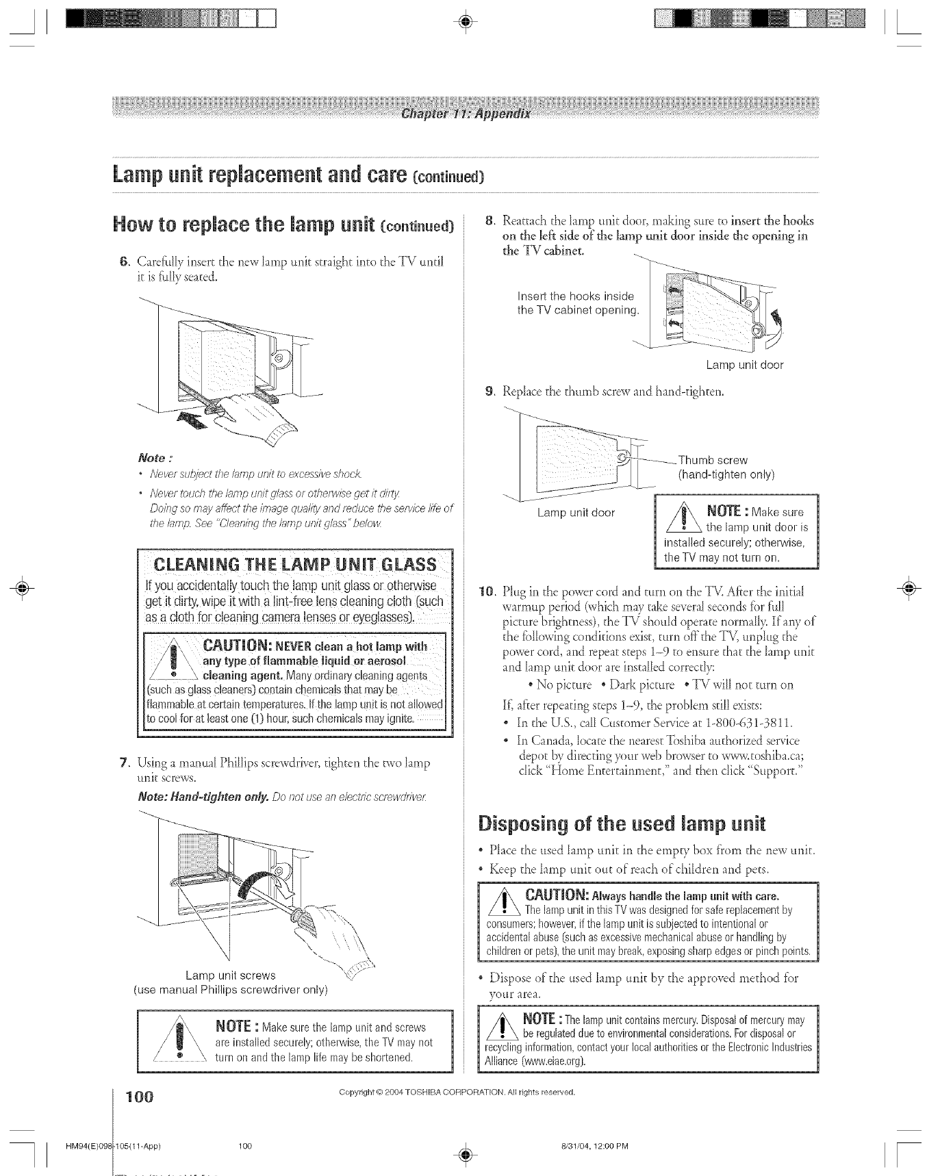 • Dispose of the used lamp unit by the approved method for your