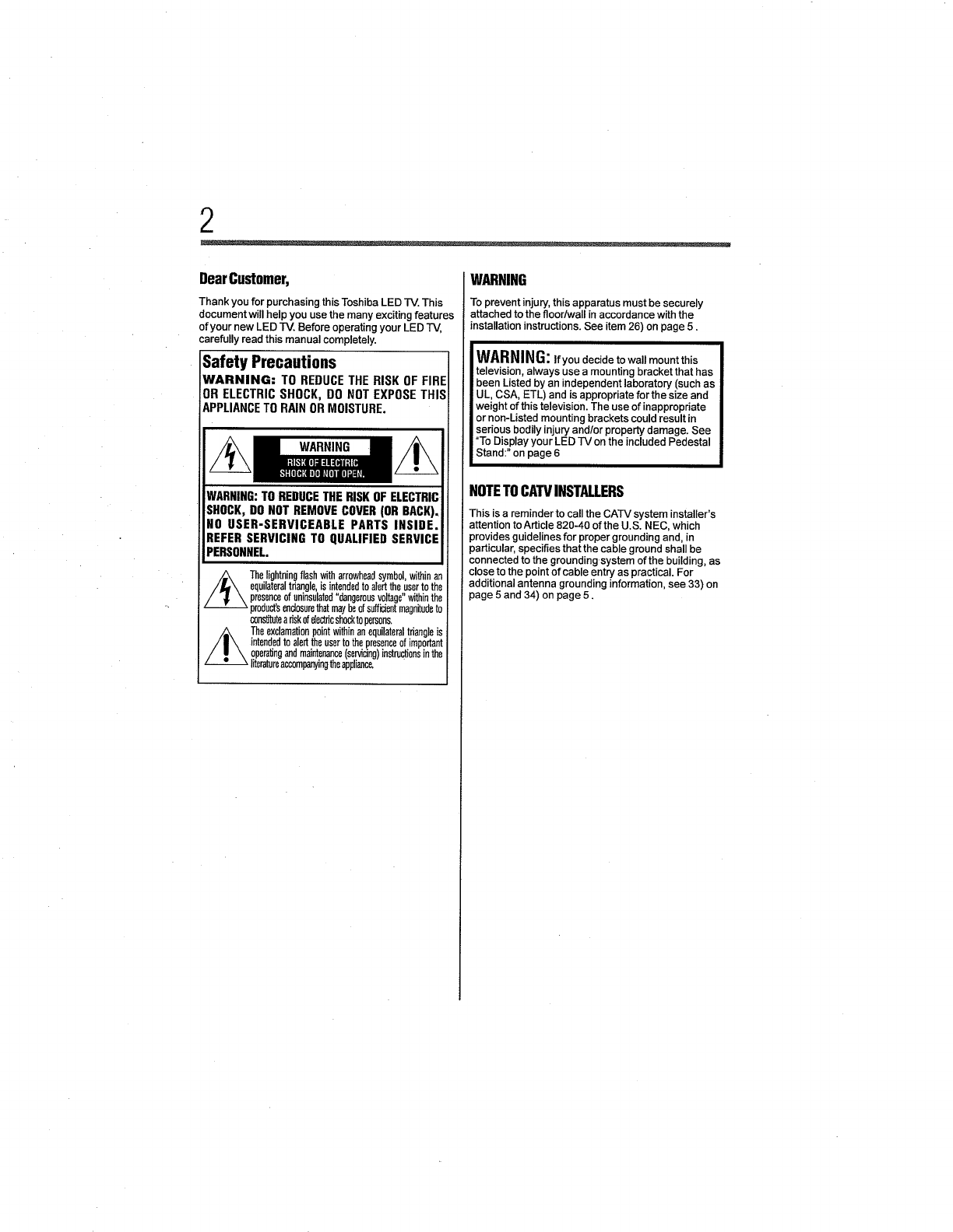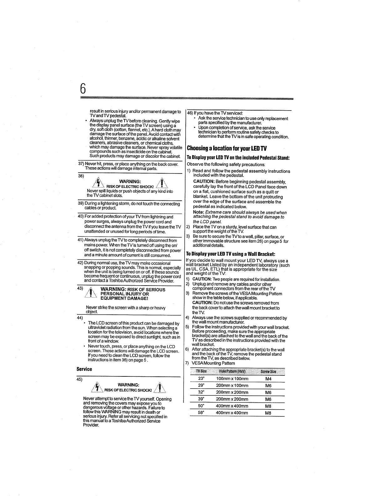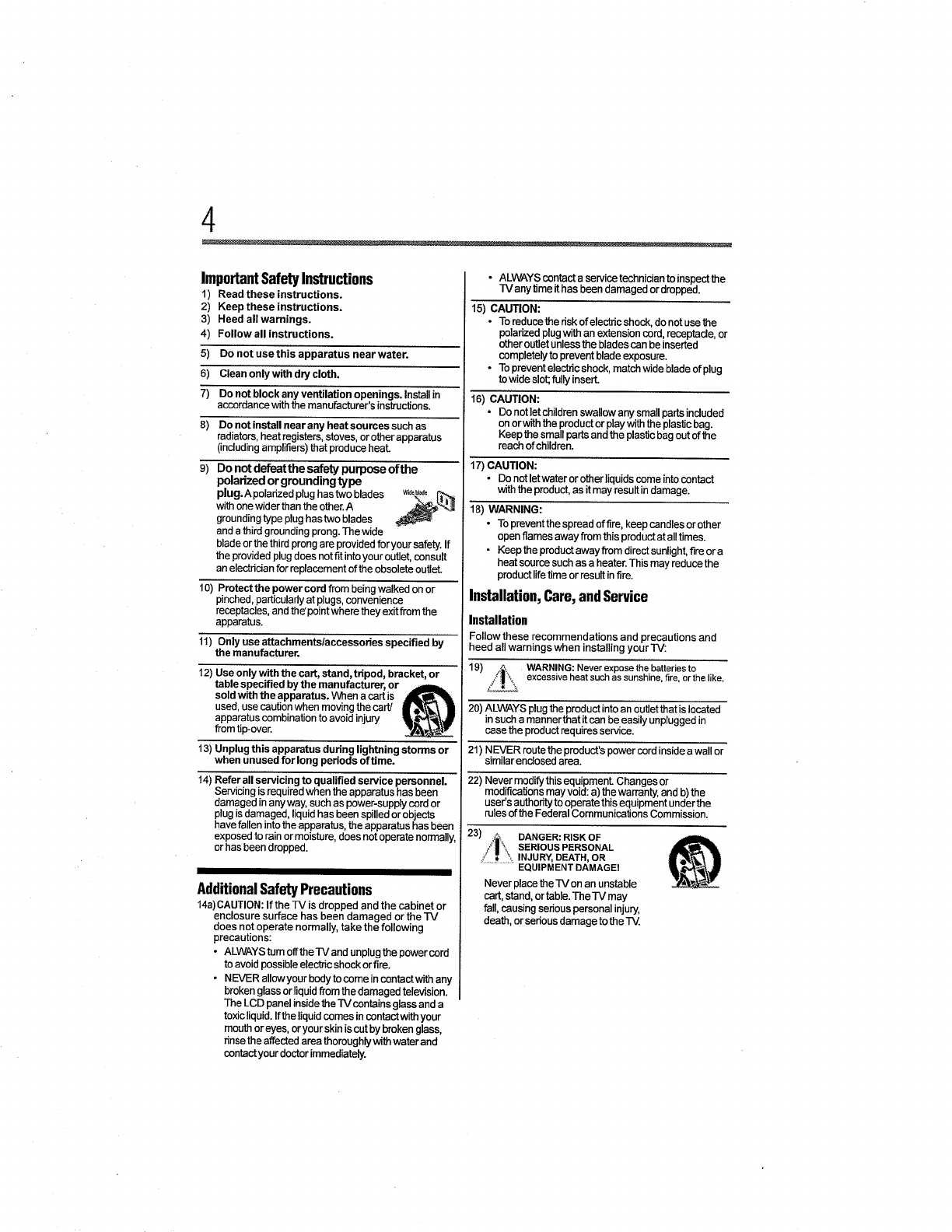 proper stands or installed according to the manufacturer's recommendations. Televisions that