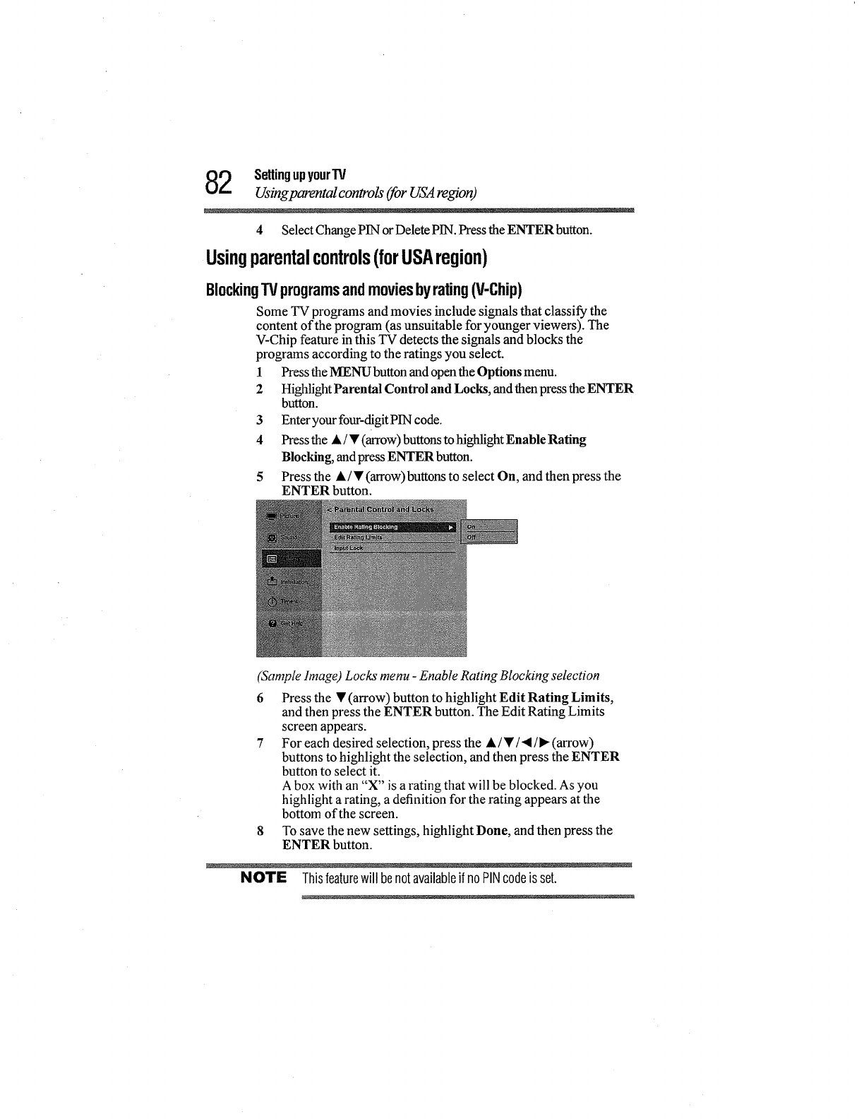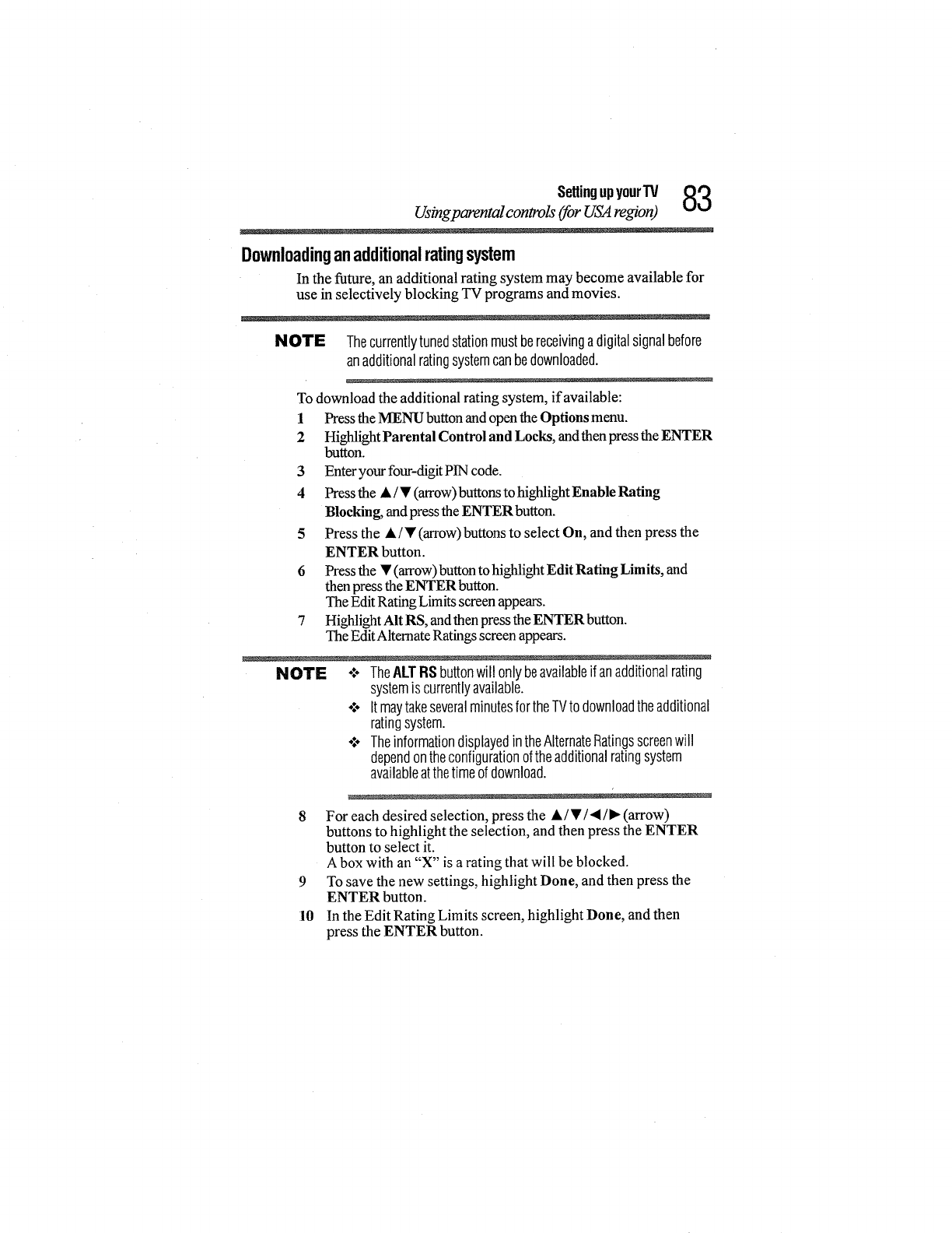 • N EVER allow children to climb on or play on the television or the furni tu re on which the television