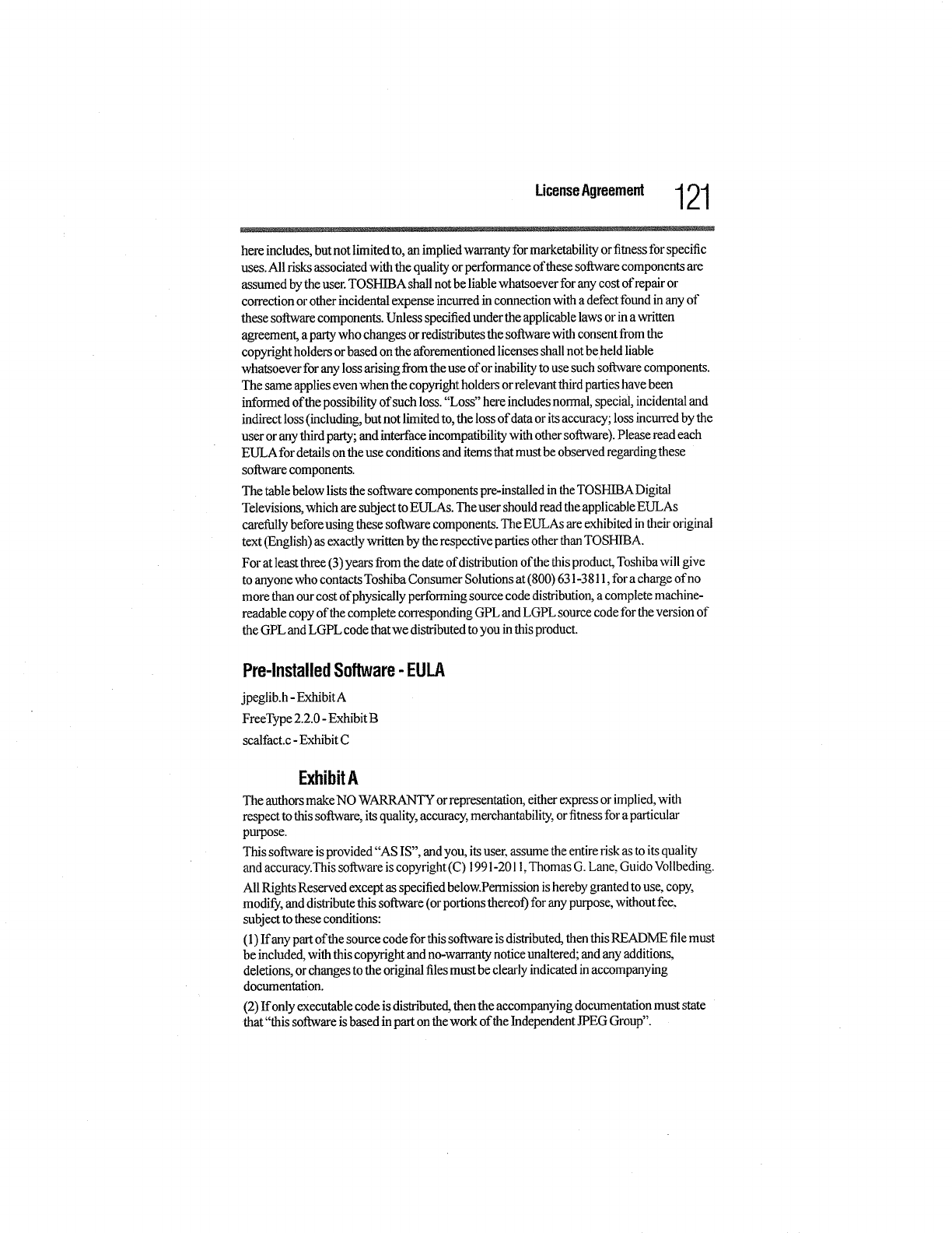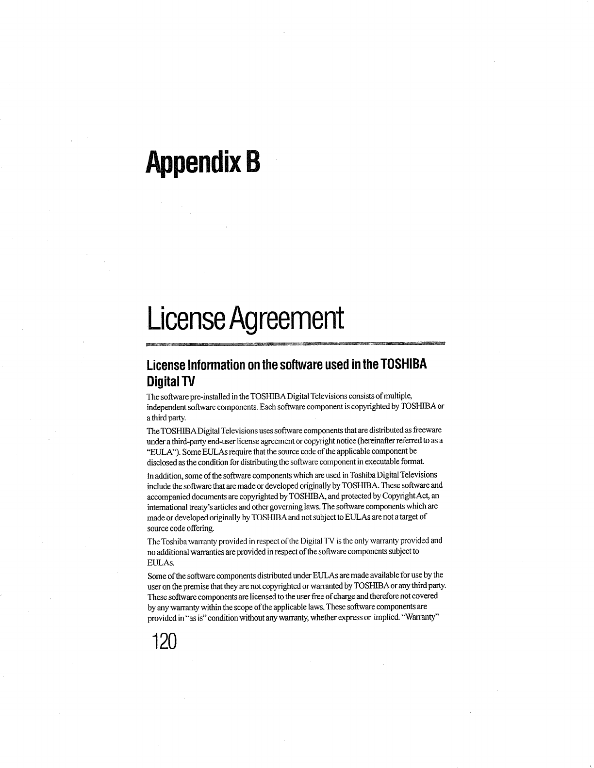 The table below lists the software components pre-installed in the TOSHIBADigital