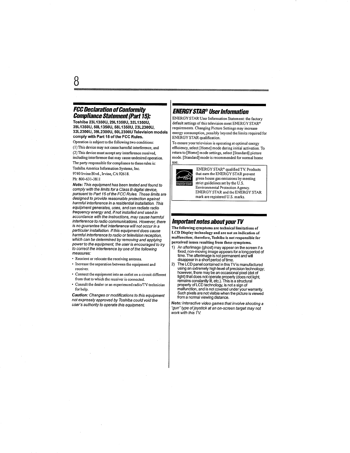 Toshiba Flat Panel Television 23L1350U 1307440L