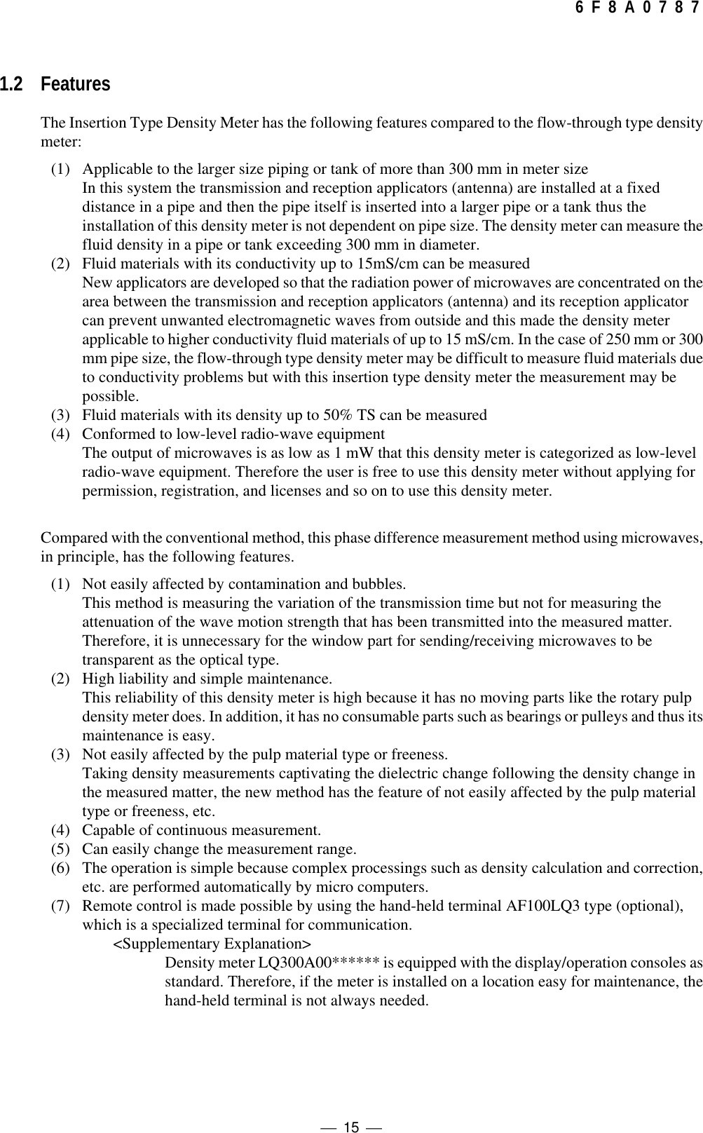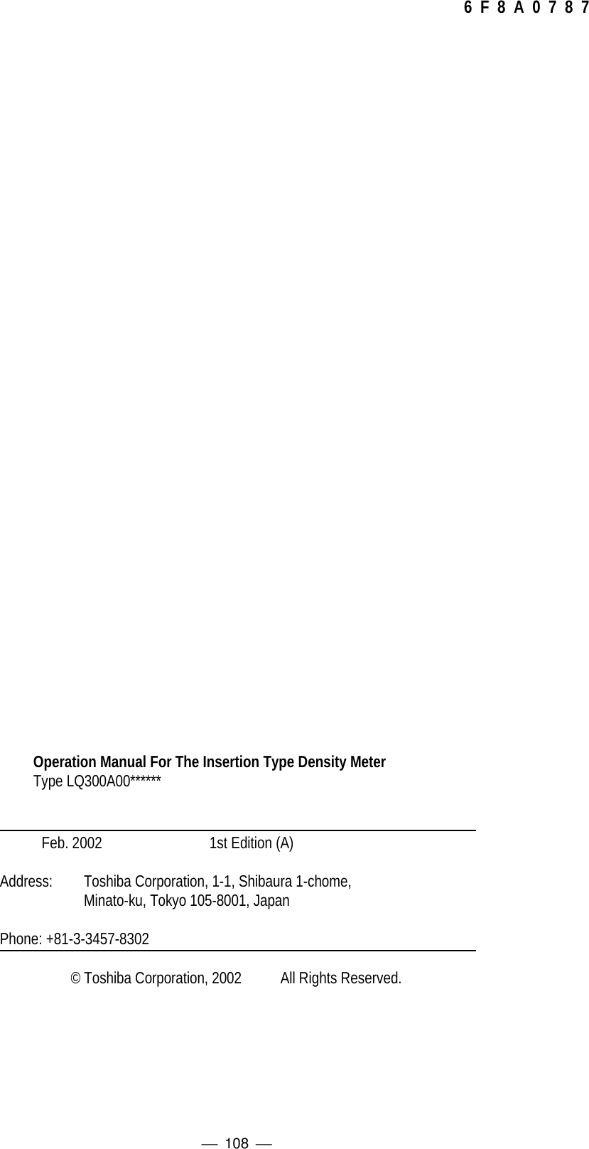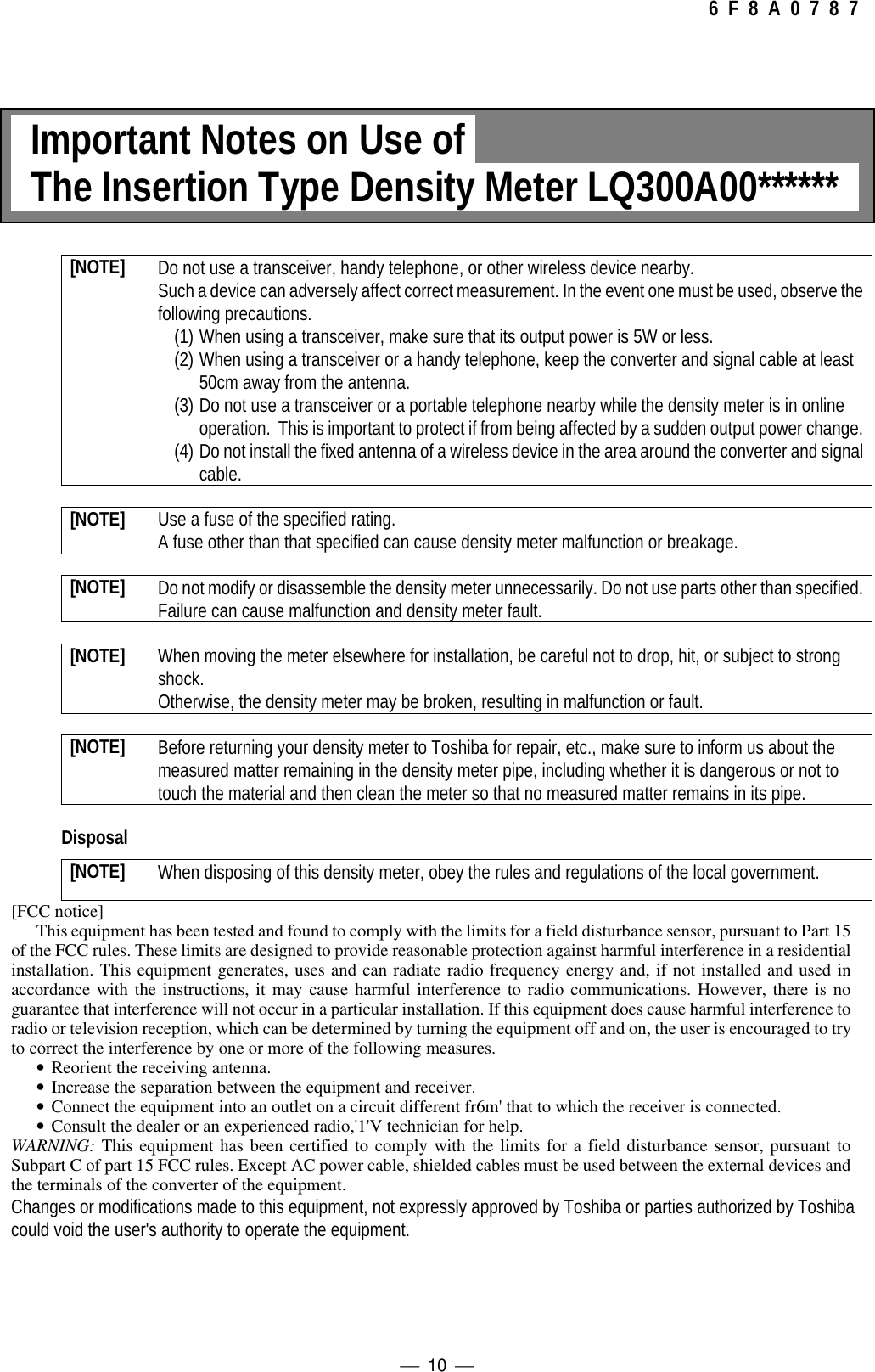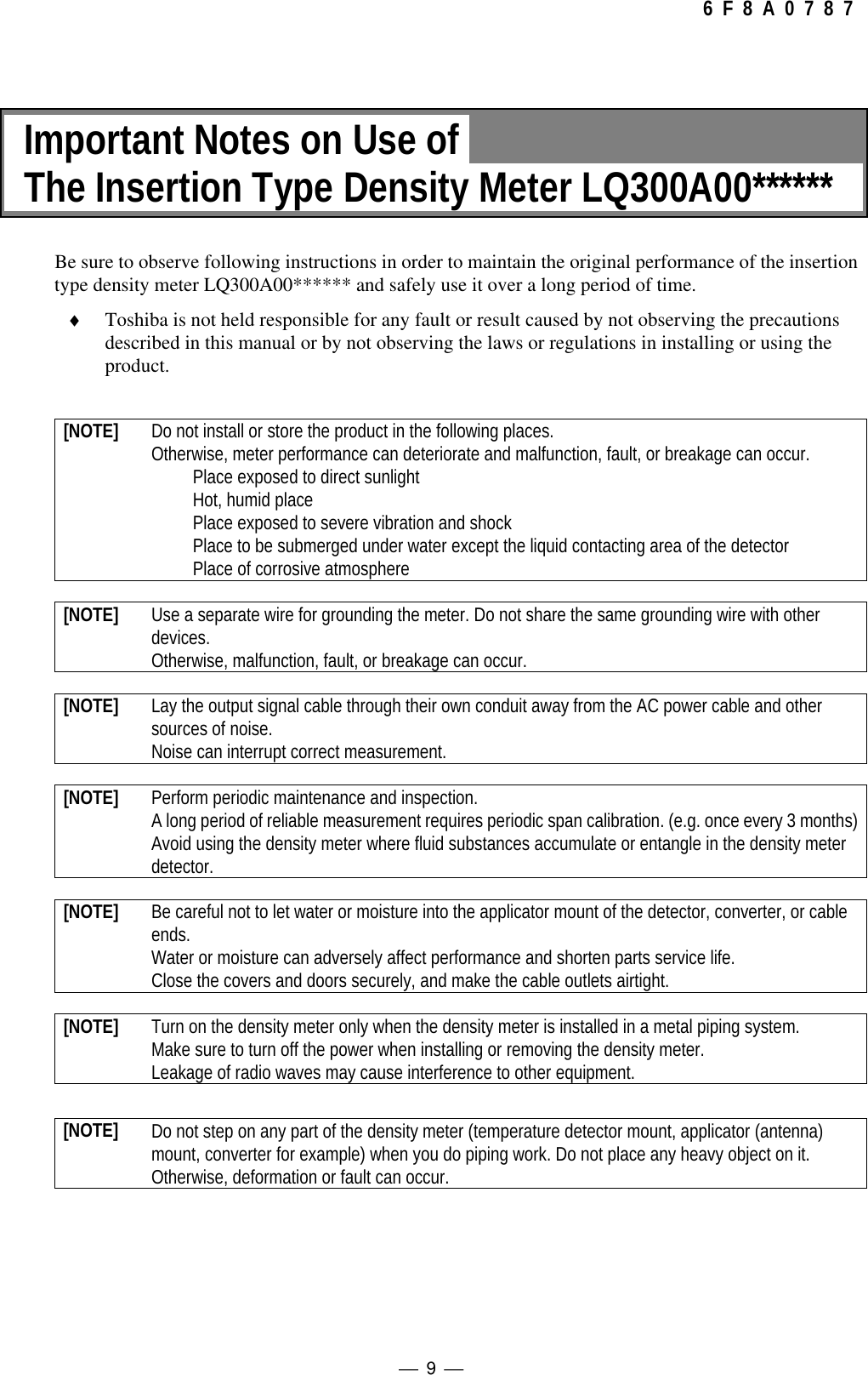 Toshiba 62372311 Density Meter User Manual LQ300A00