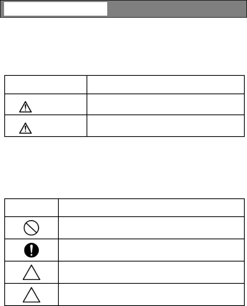 The safety signs used in the Safety Precautions will appear again in the following sections for