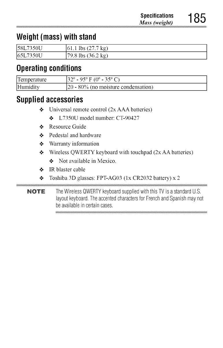 supplied accessories 185