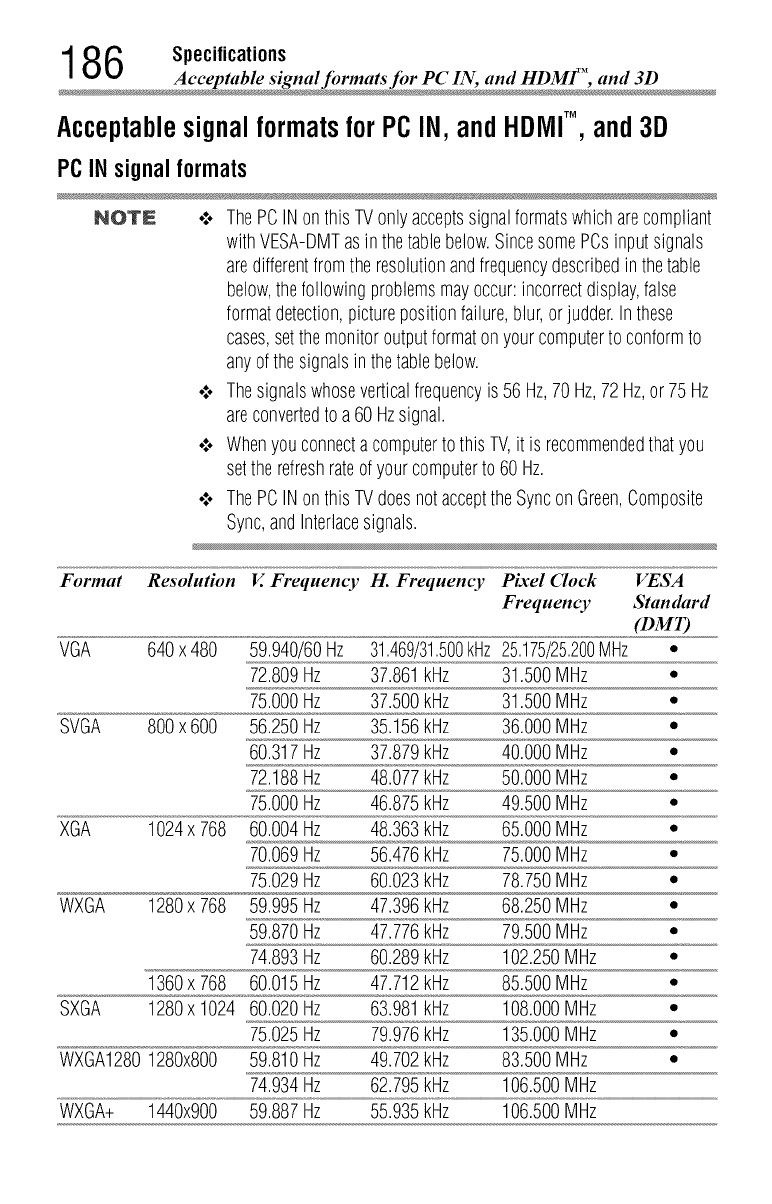PC IN signal formats 186