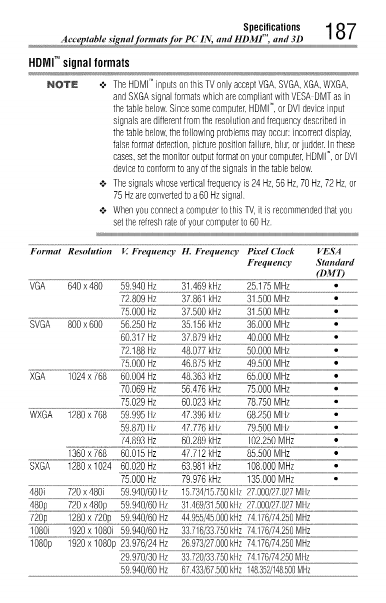 HDMI TM signal formats 187