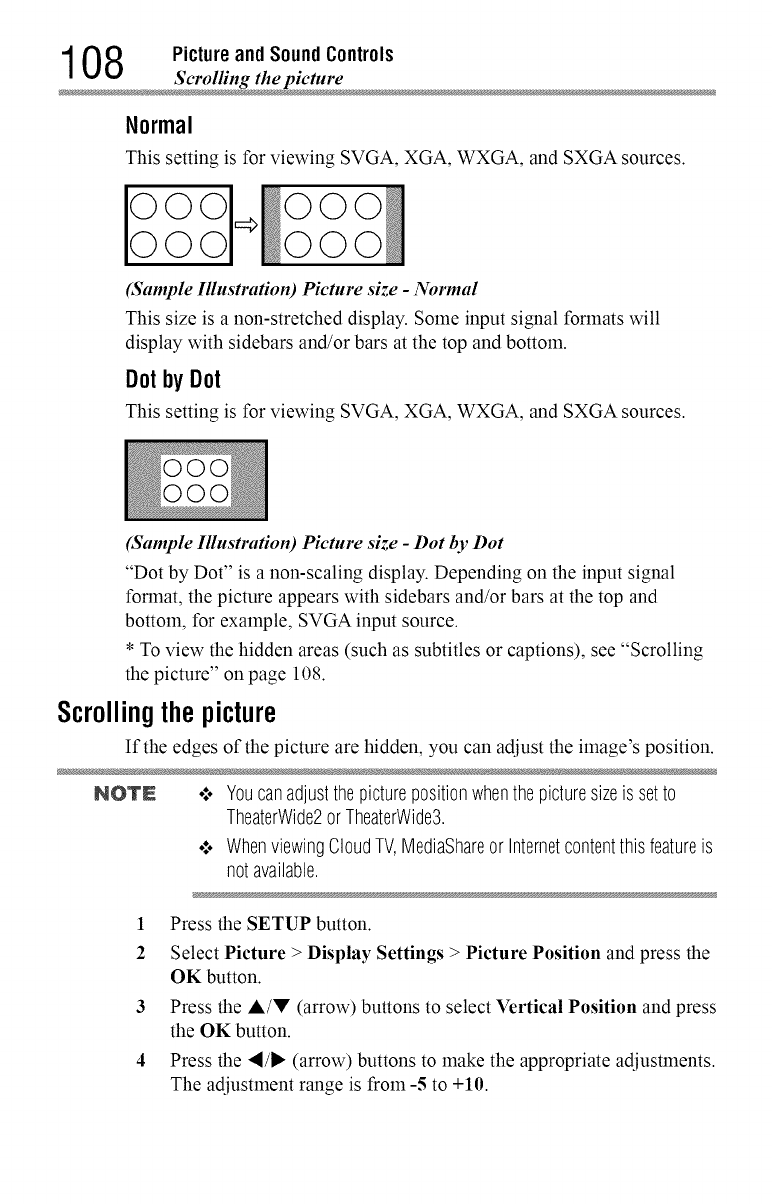 ¢ IfyouselectaTheaterWide®picturesize,thetopandbottomedgesof