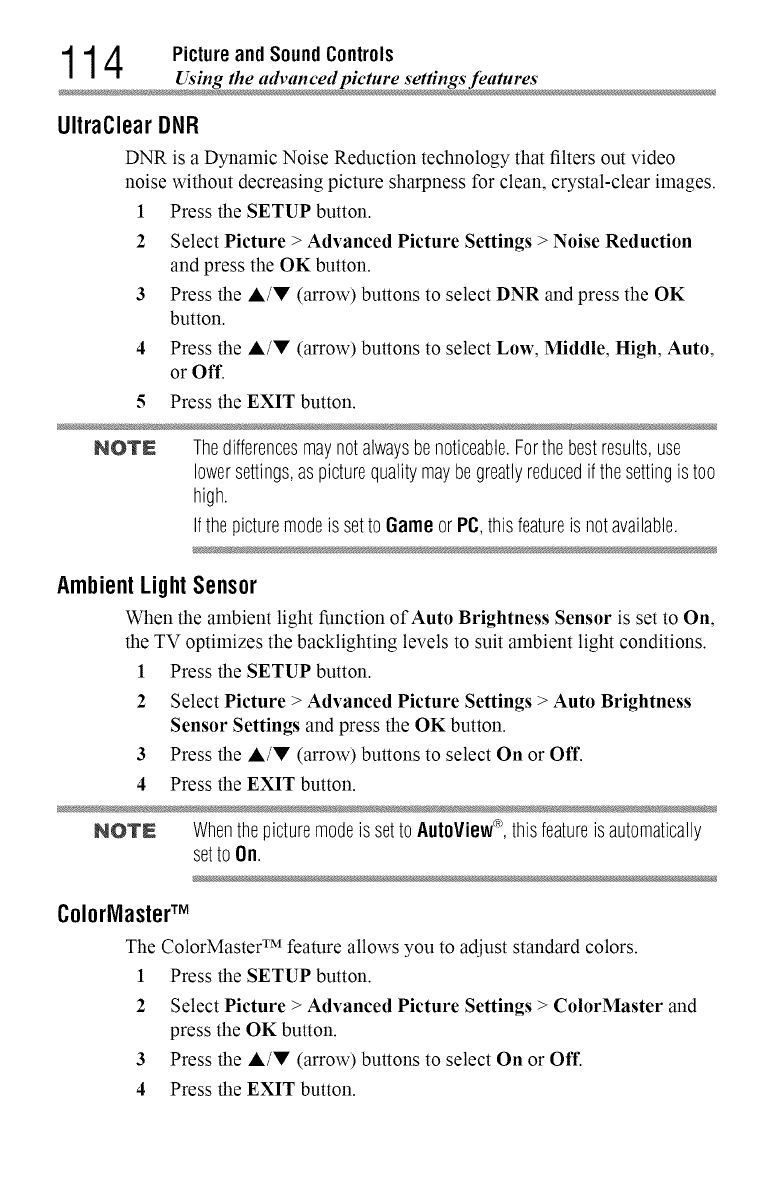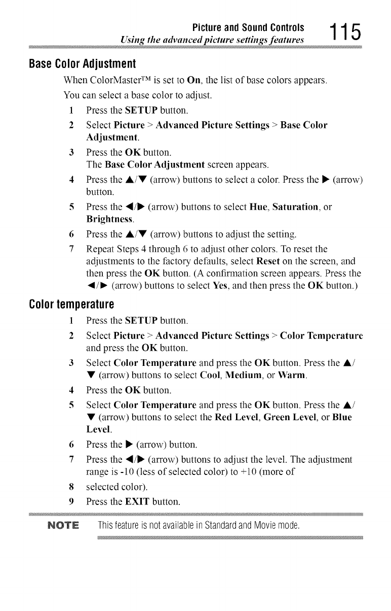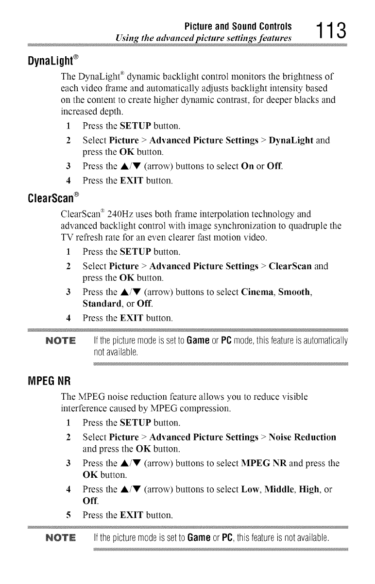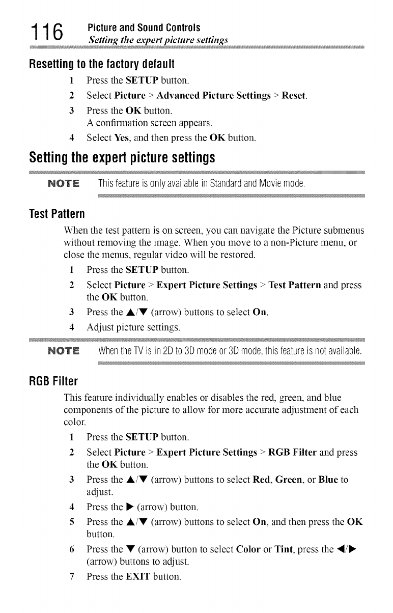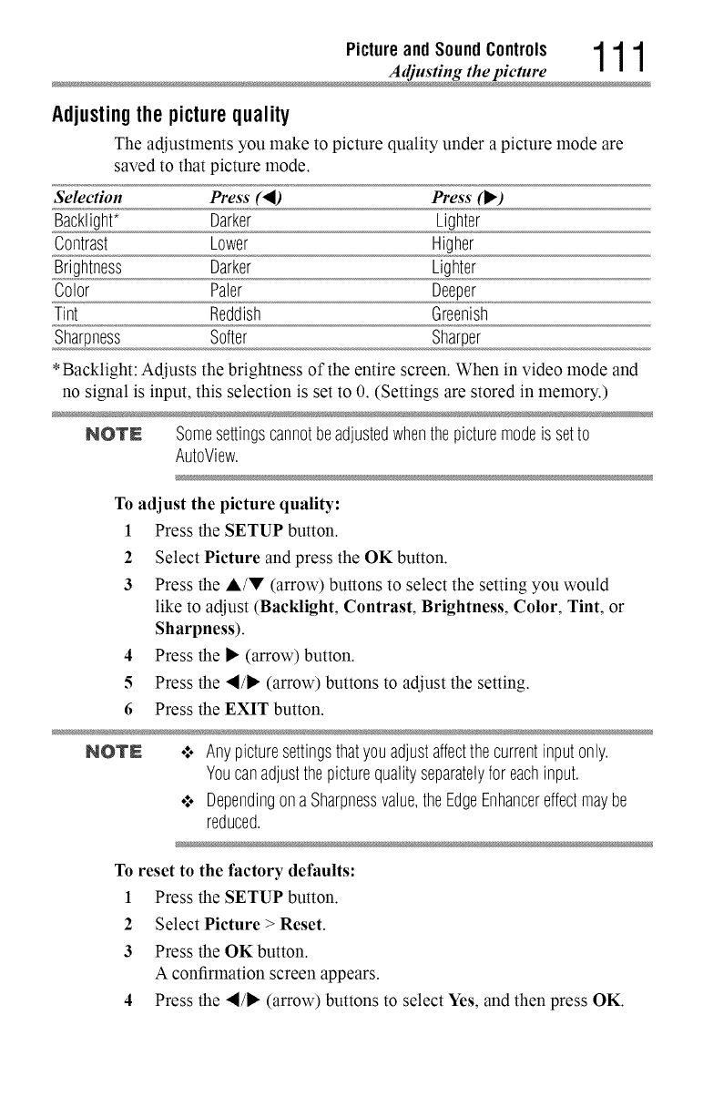 These settings are for viewing in 480i (HDMIT'), 480p (HDMI'M), 720p,