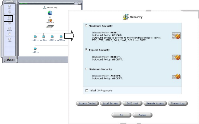 the security level currently selected: Minimum, Typical or Maximum. Click this