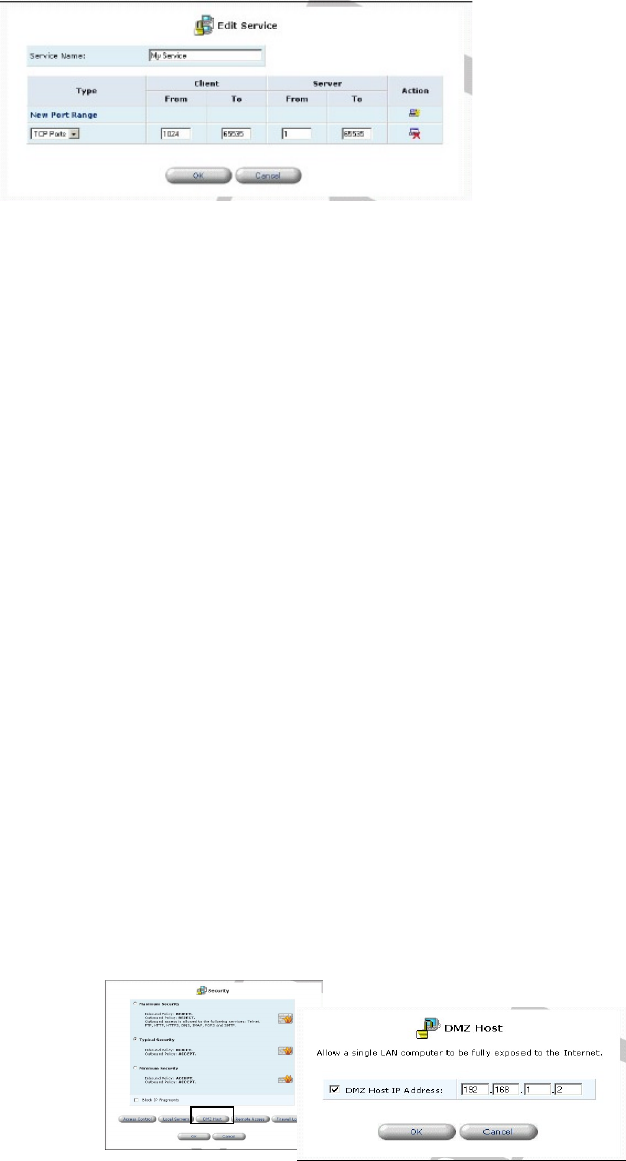 Setup DMZ (Demilitarized Zone) Security -> DMZ host