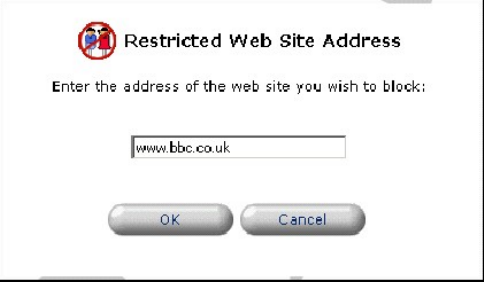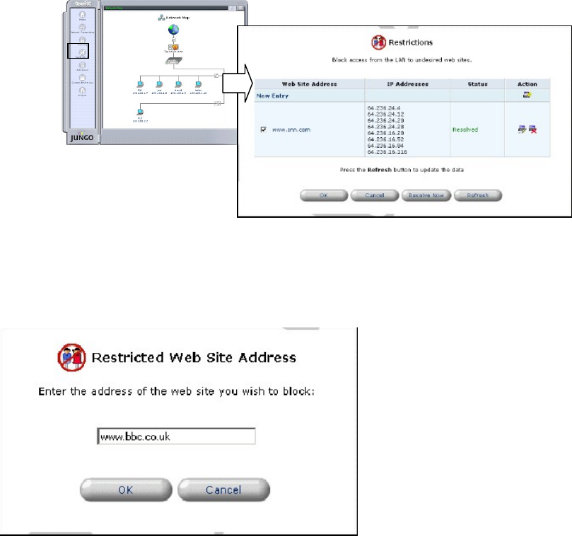 1. Click the New Entry button in the Restinctions screen. The Restricted Web Site Address
