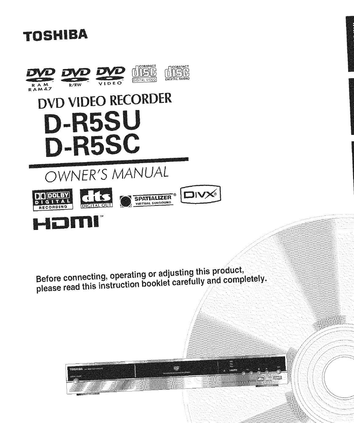 User Manual: Toshiba D-R5SU D-R5SU TOSHIBA DVD RECORDER - Manuals and Guides View the owners manual for your TOSHIBA DVD RECORDER #DR5SU. Home:Electronics Parts:Toshiba Parts:Toshiba DVD RECORDER Manual