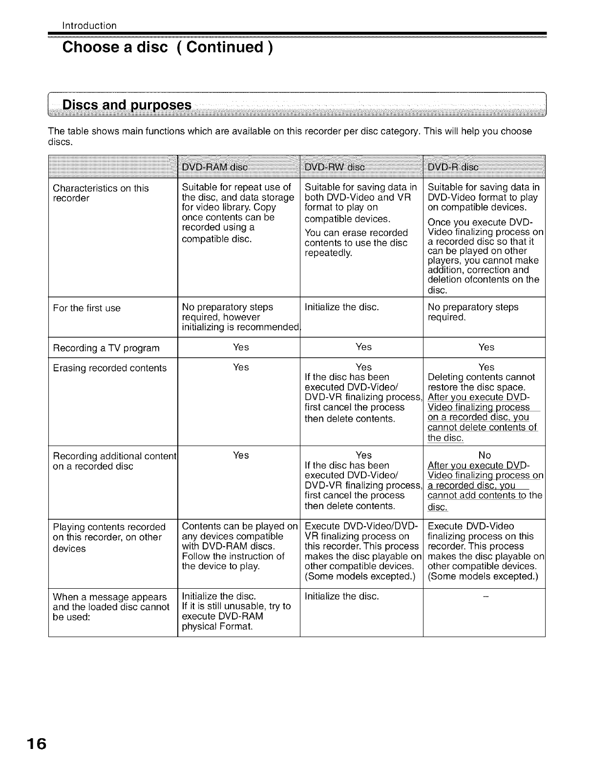 Discs andpurposes ................................................................. 16