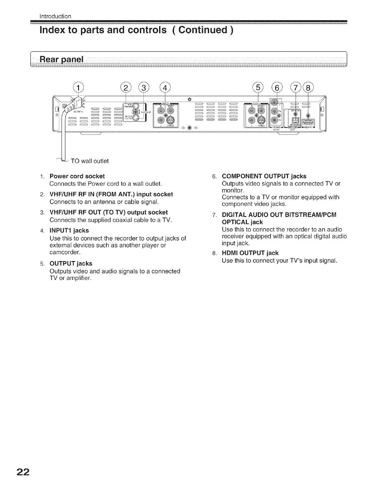 Rear panel ............................................................................... 22