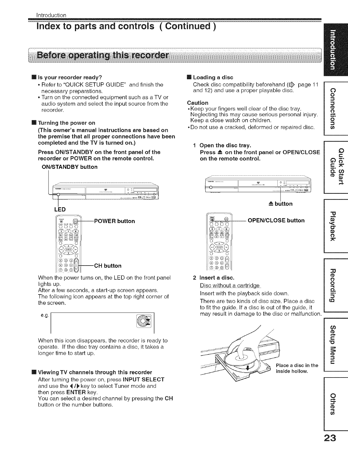 Before operating this recorder ................................................. 23