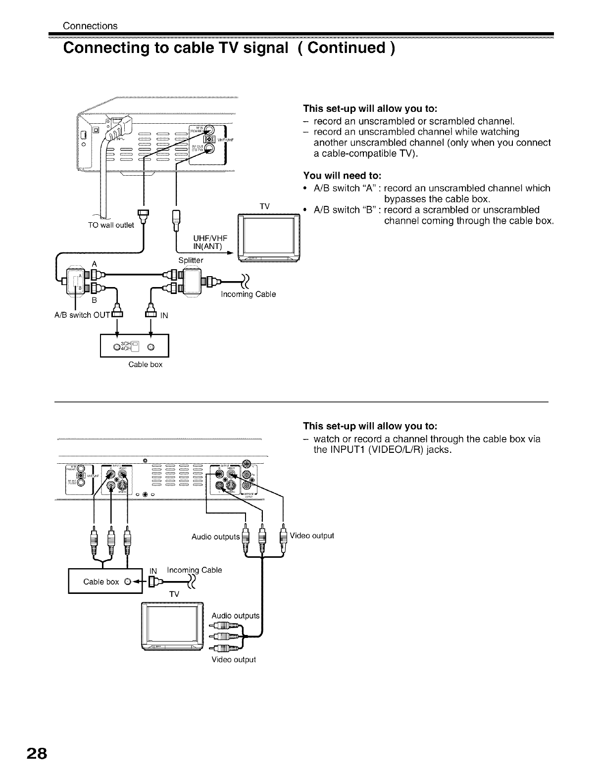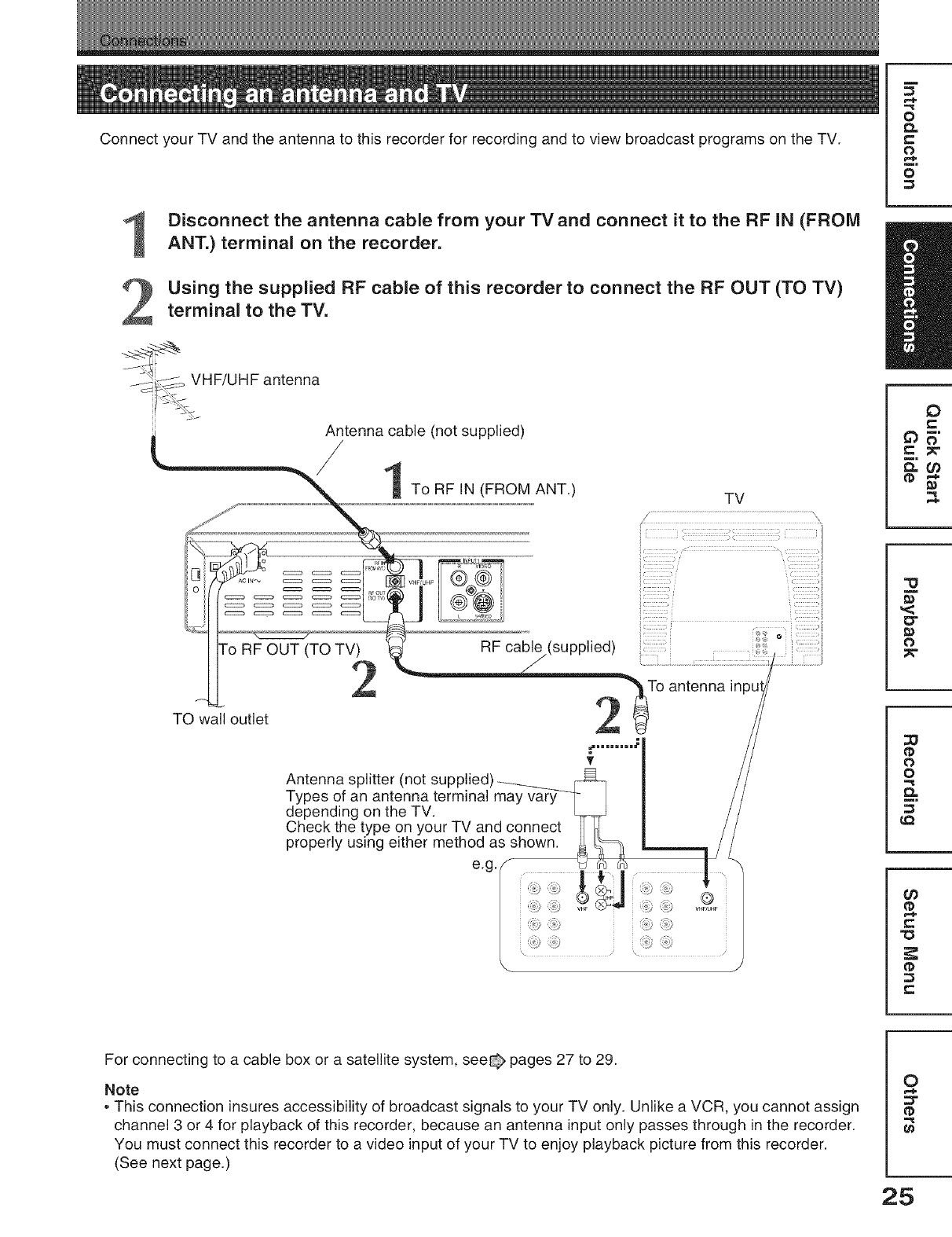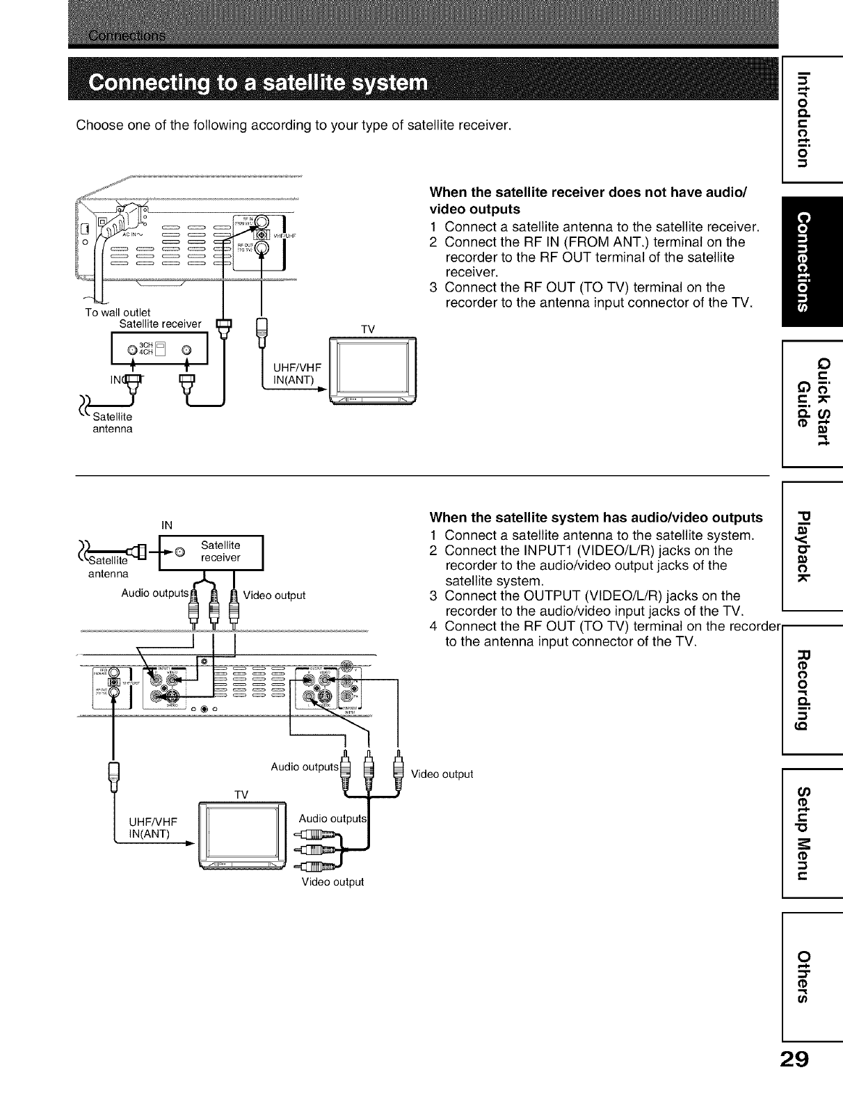 Connect a cable box or satellite system to the recorder,