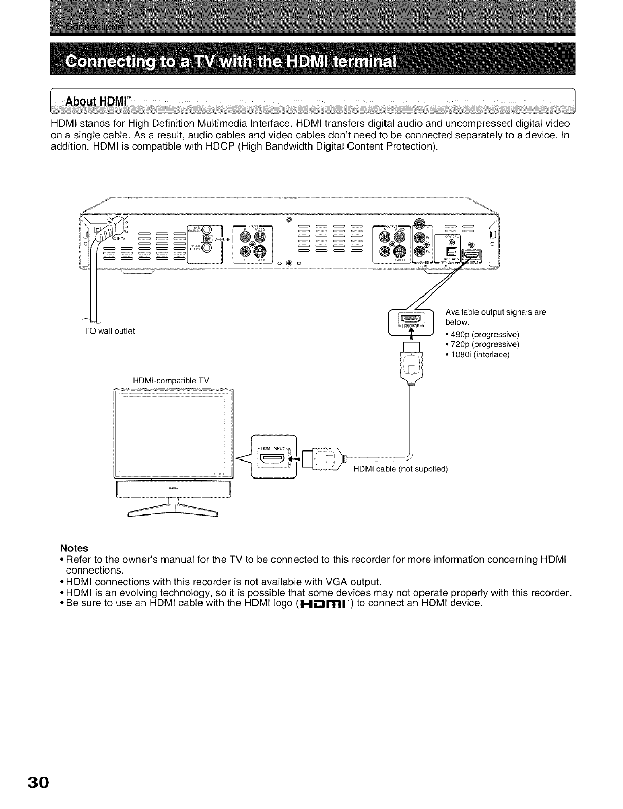 Connecting to a TV with the HDMI terminal ............... 30