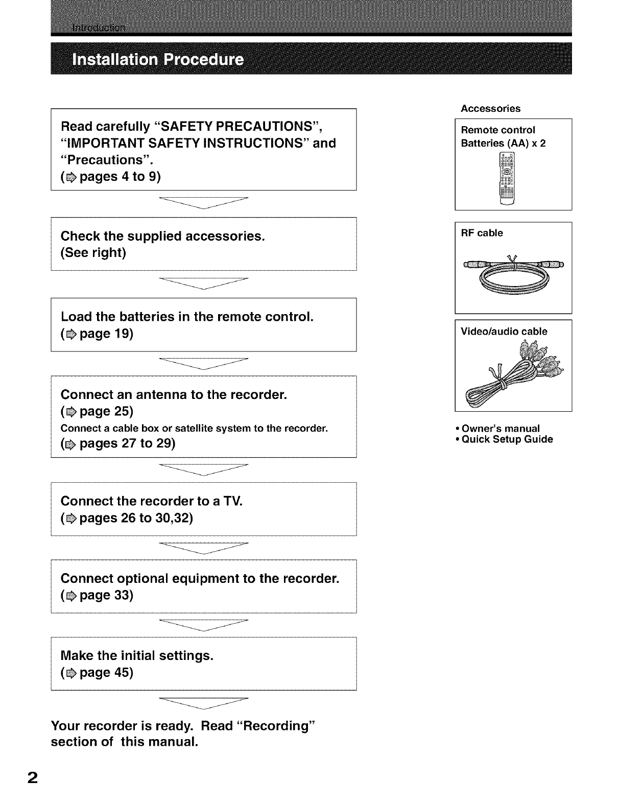 Your recorder is ready. Read "Recording"