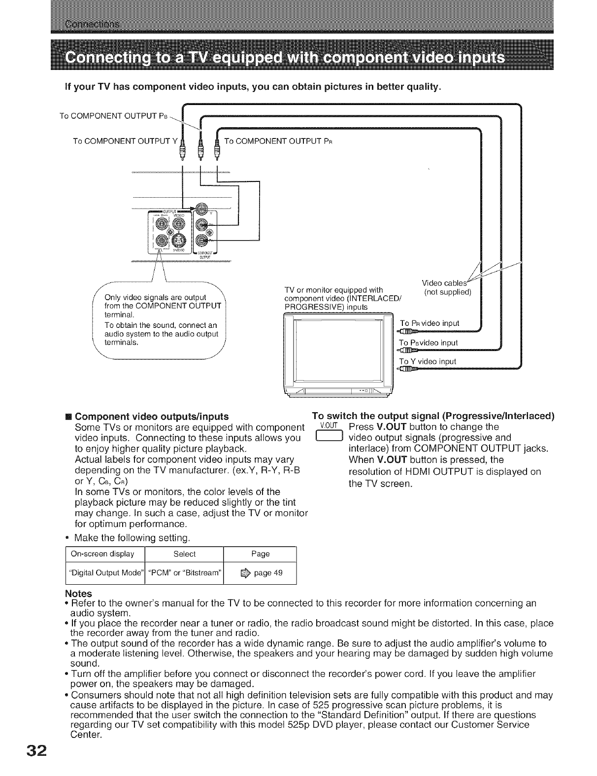 Connecting to a TV equipped with component video
