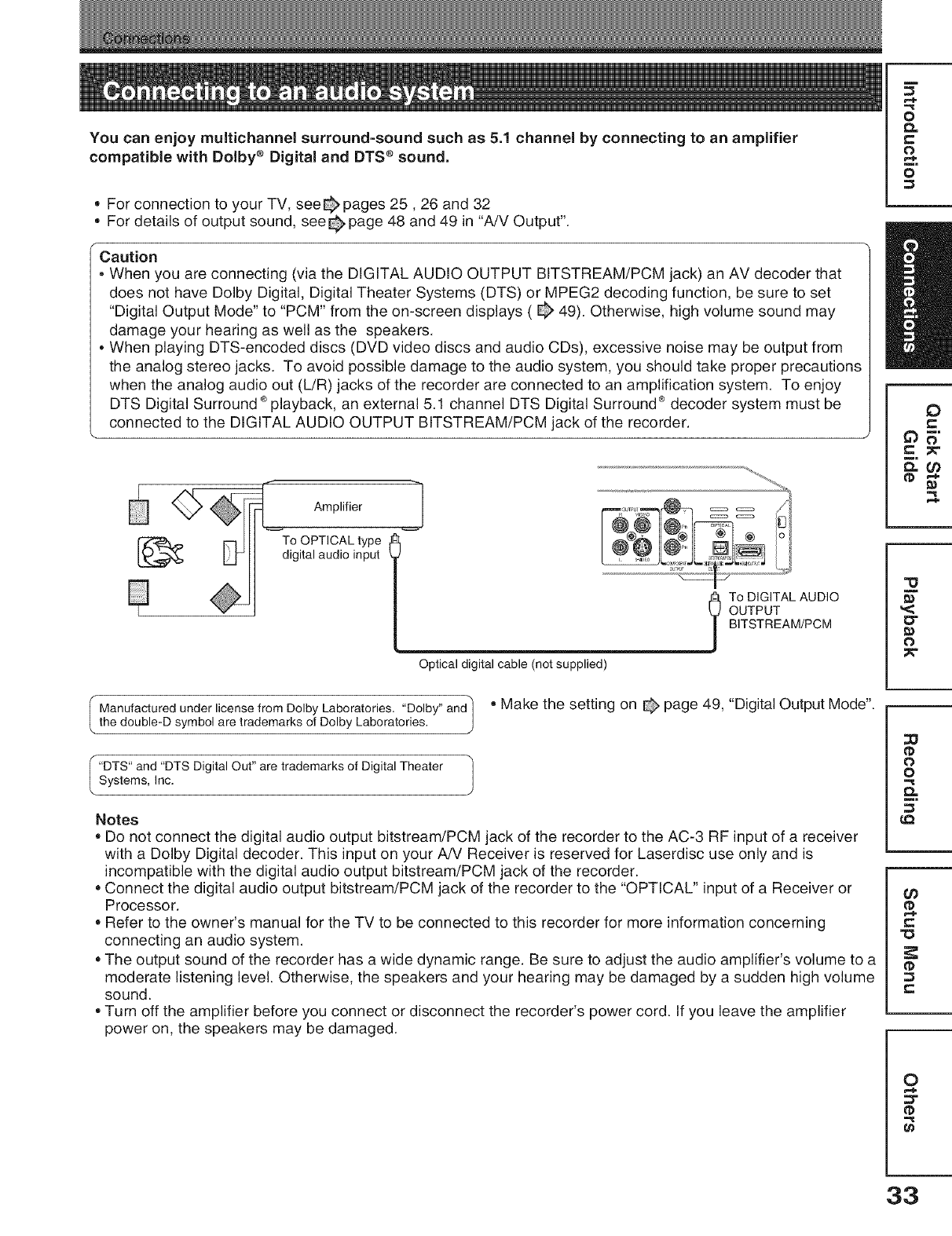 Connecting to an audio system .................................. 33