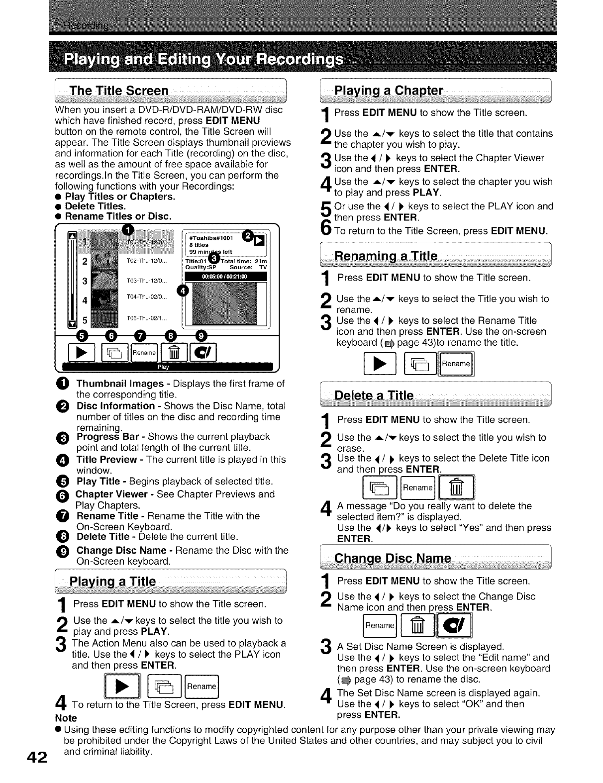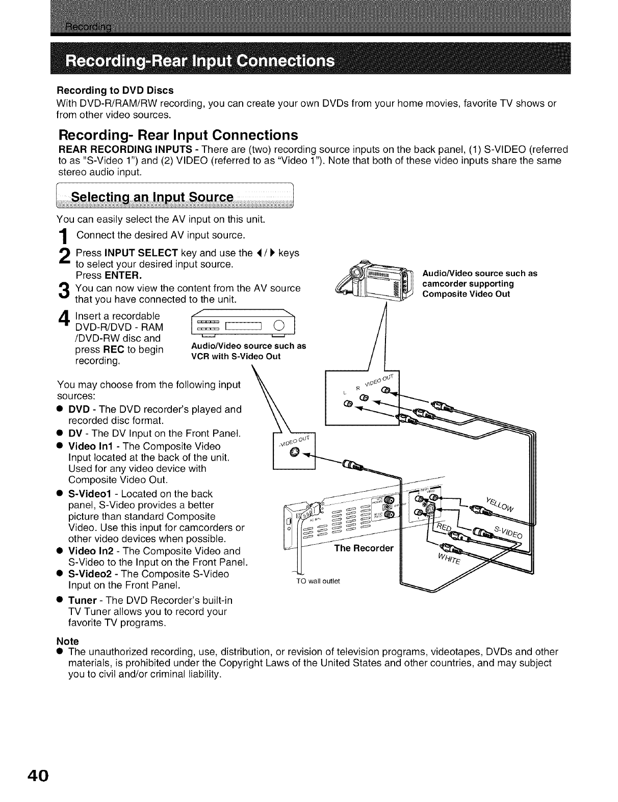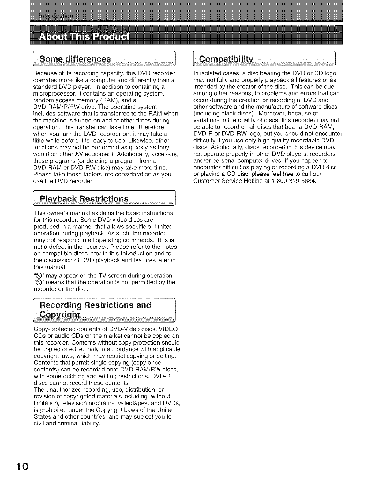 Recording Restrictions and Copyright ..................................... 10