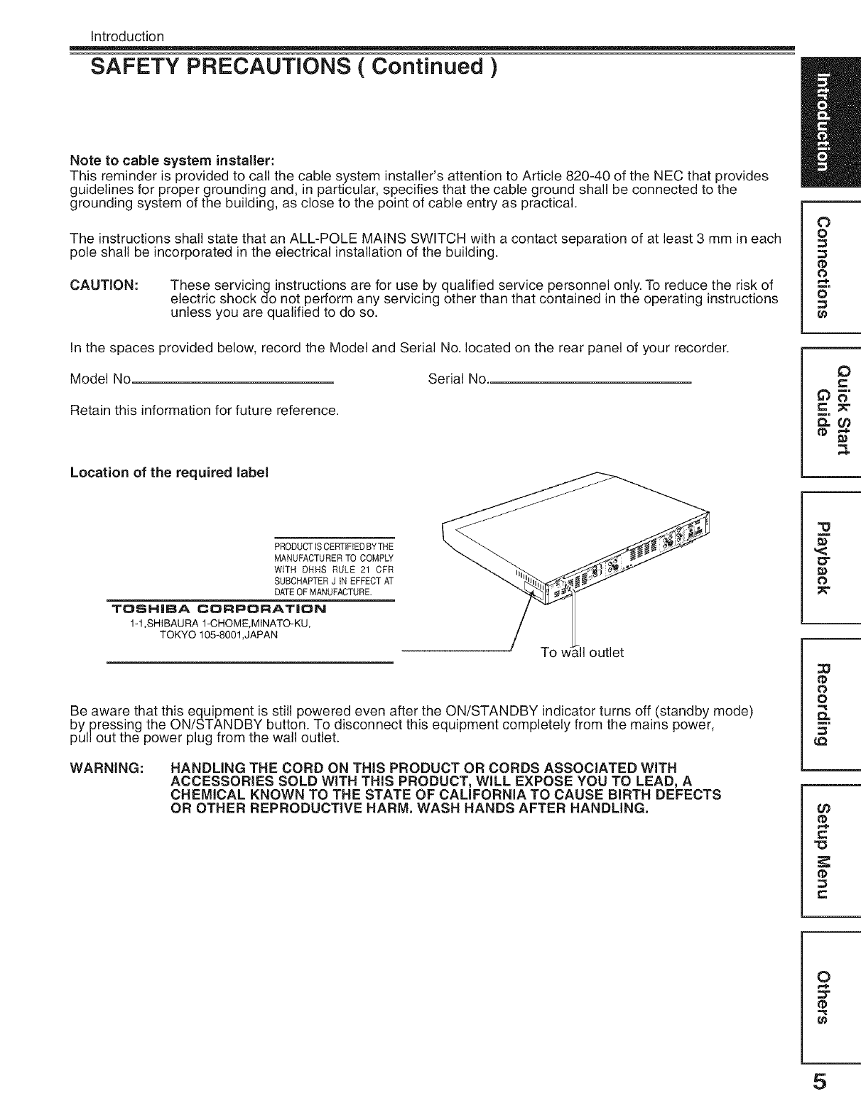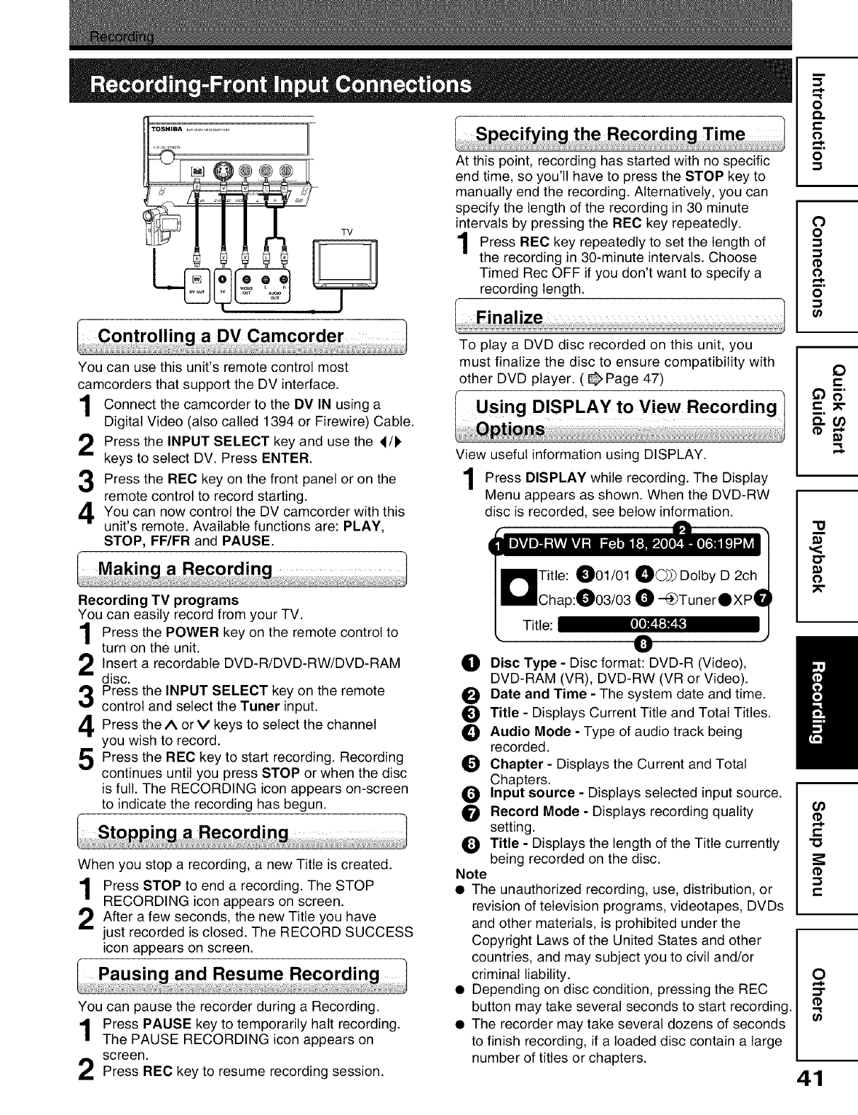 Toshiba D R5SU User Manual DVD RECORDER Manuals And Guides L0604892