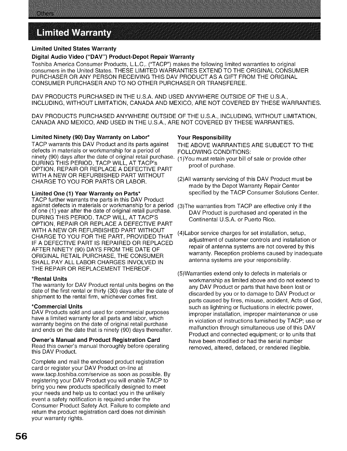 Contact: Toshiba of Canada Limited at the Consumer