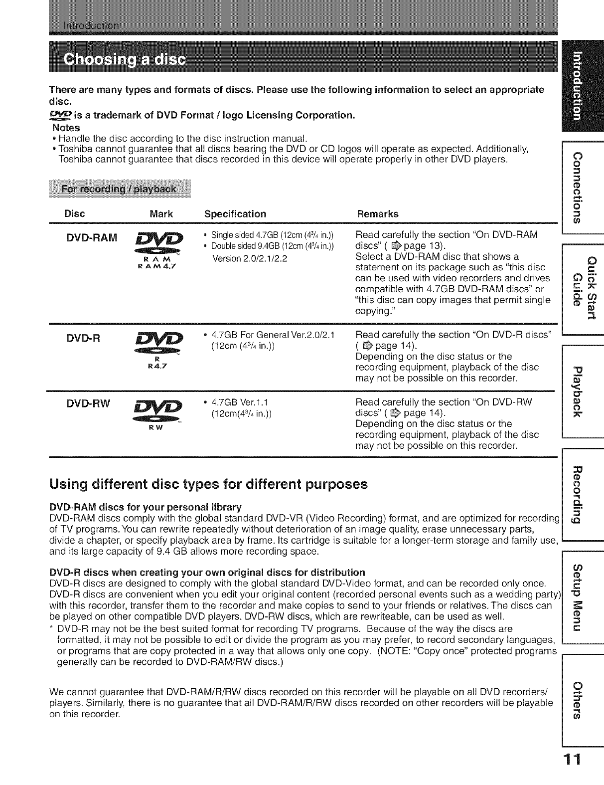 Choosing a disc ............................................................ 11