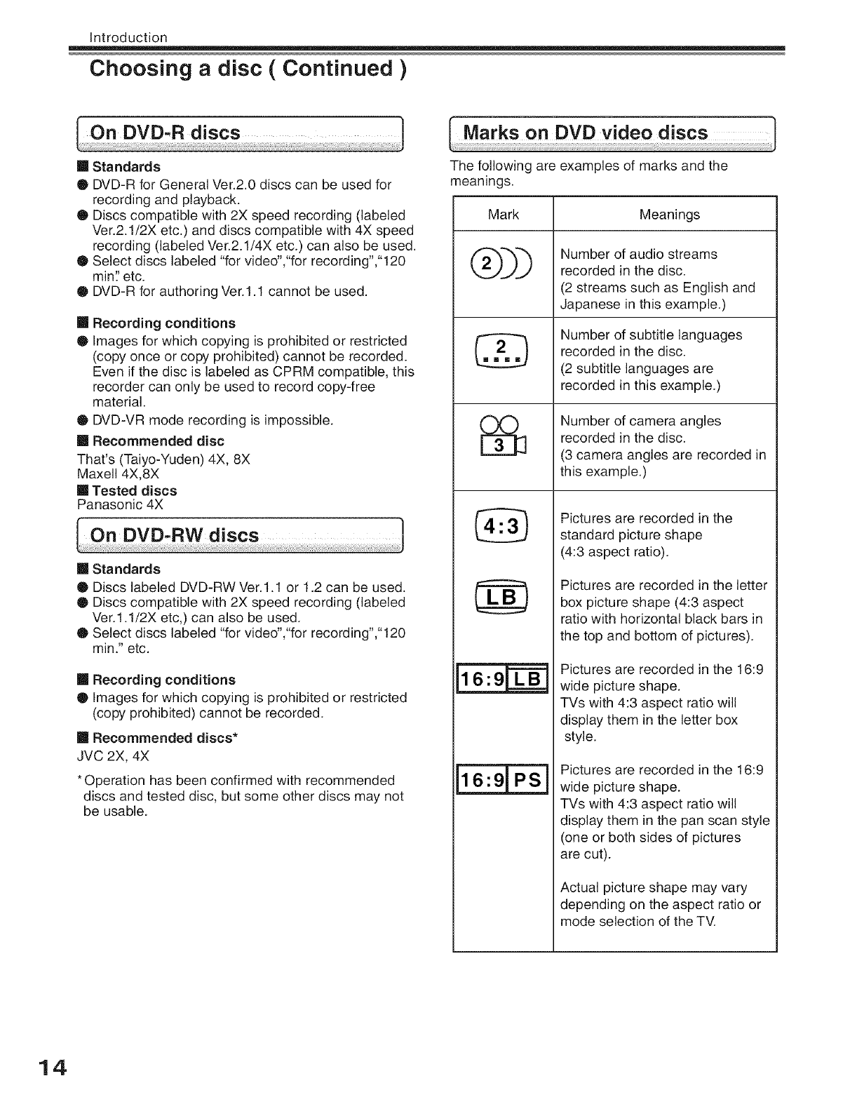 Marks on DVD video discs ...................................................... 14