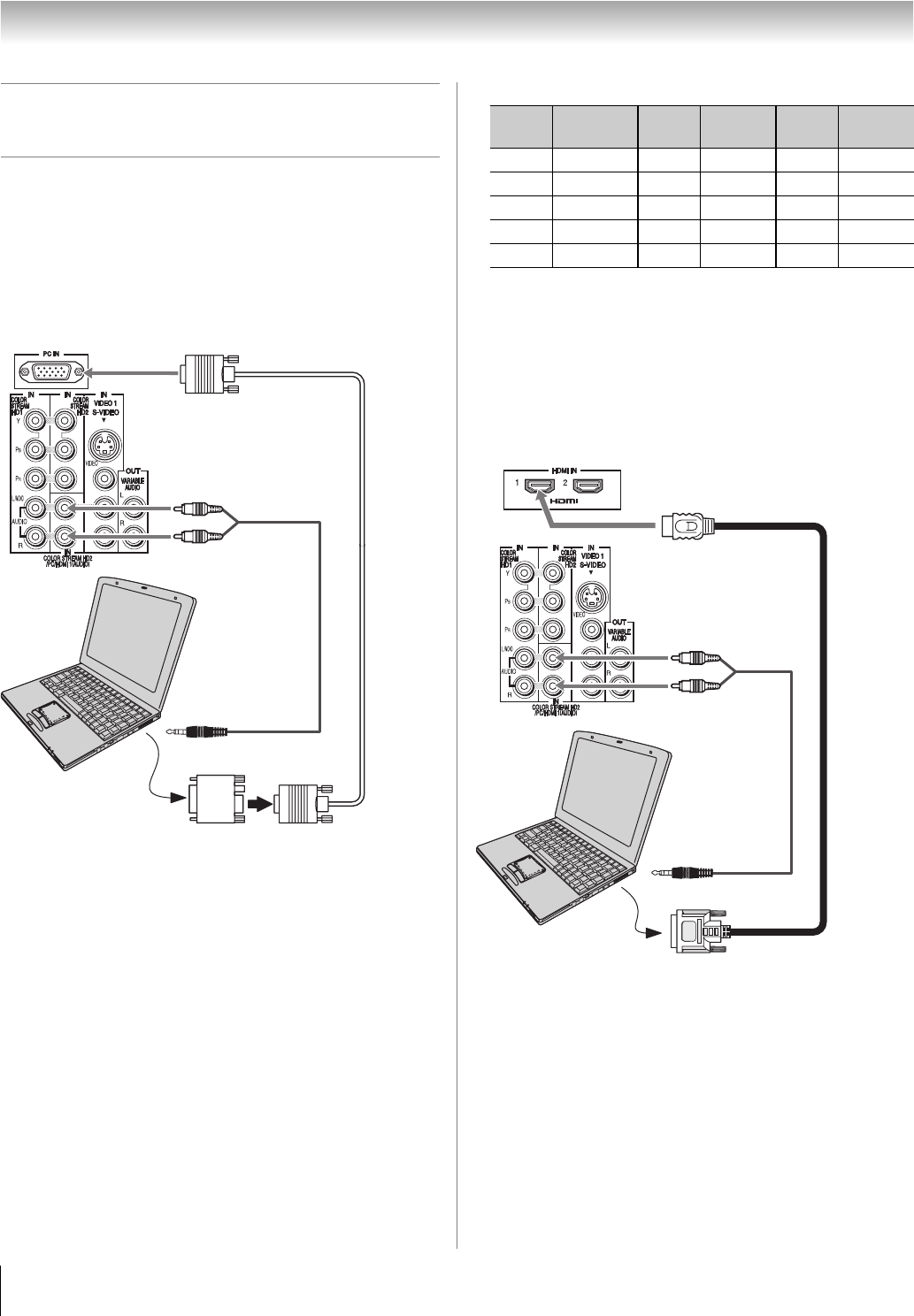 Note: To display a High Definition picture, the TV must be receiving a