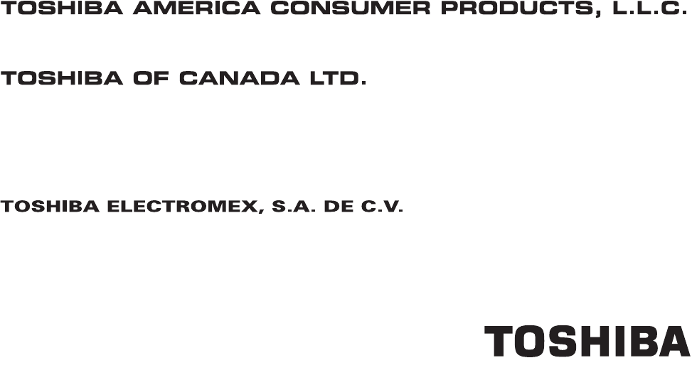 CableClear, ColorStream, and TheaterWide are registered trademarks of Toshiba America Consumer Products, L.L.C.