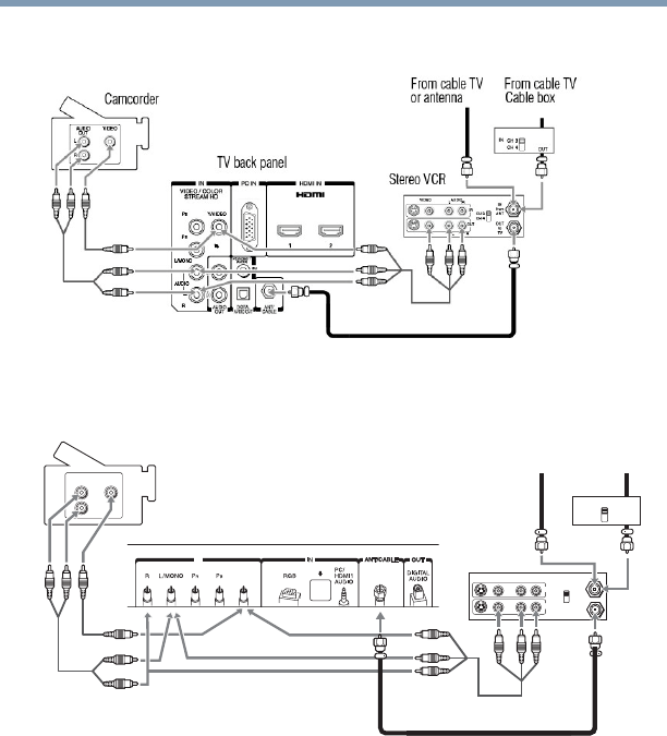 - Connecting a VCR, antenna, cable TV, or camcorder