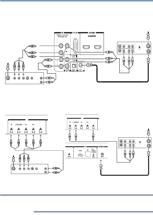 - Connecting a Blu-ray™/DVD Player/Satellite receiver with ColorStream® (component video), or a VCR