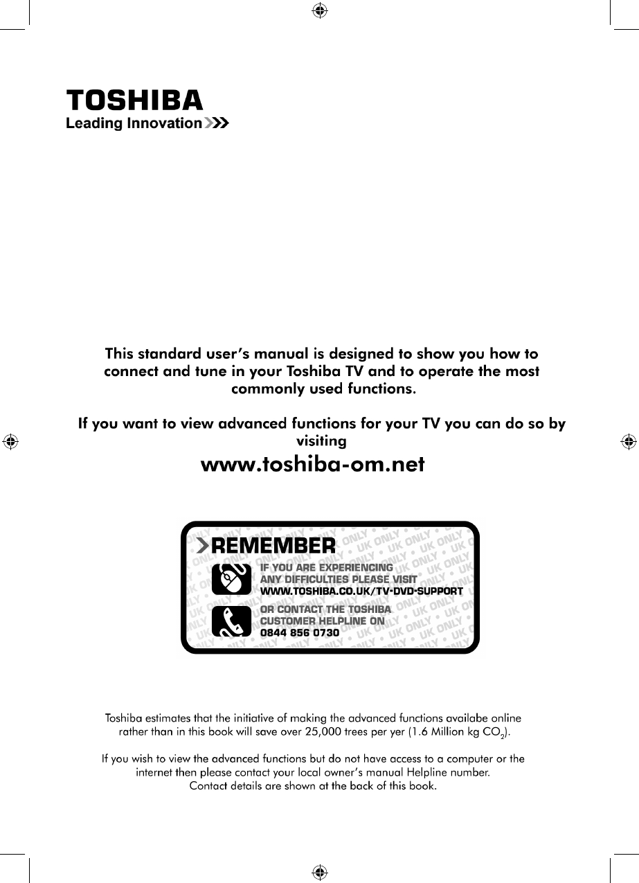 “Register your TV online at: www.toshiba.co.uk/registration”