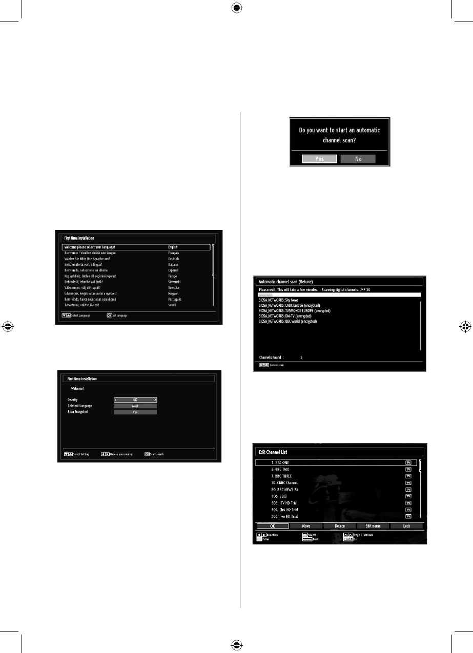 4 ) After auto channel scan type is set and selected and confi rmed, installation process