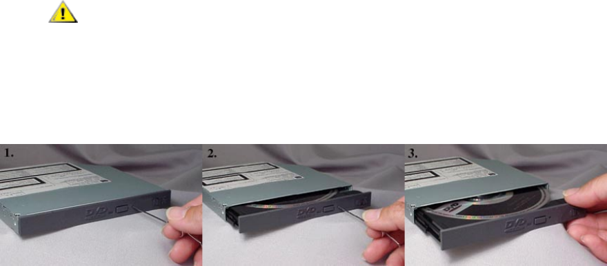 • Do not press the Eject button while the drive is playing a DVD movie or accessing a disc. To
