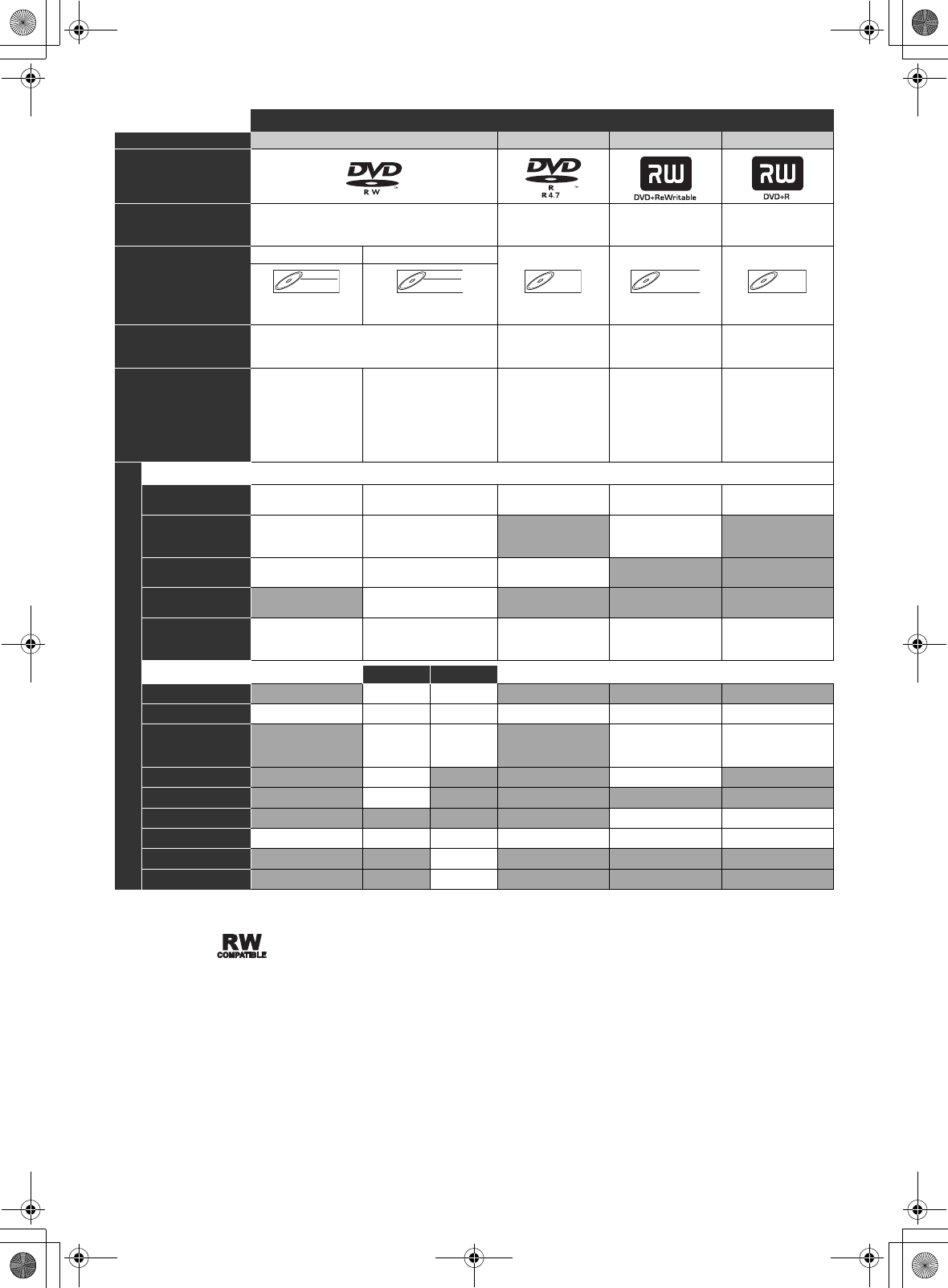 Recording format Video Recording (VR) format (DVD-RW only), video format (DVD-RW,