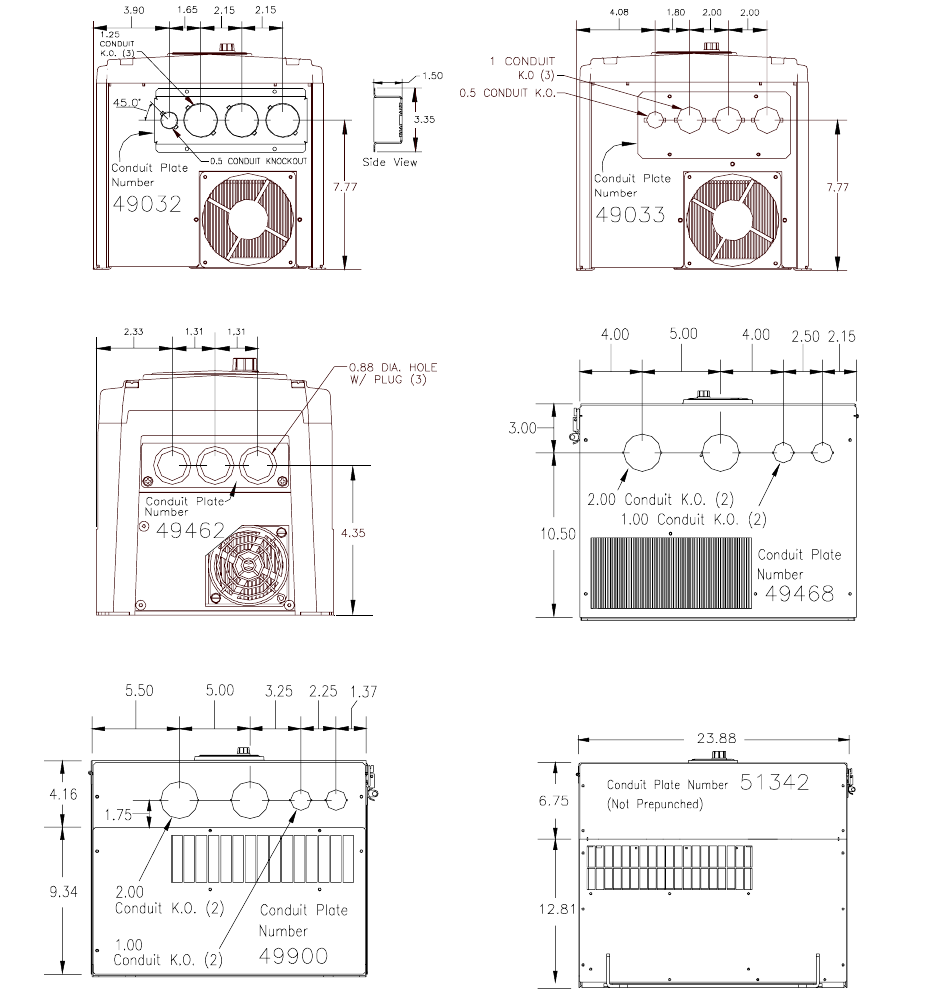 - Enclosure Dimensions and Conduit Plate Information