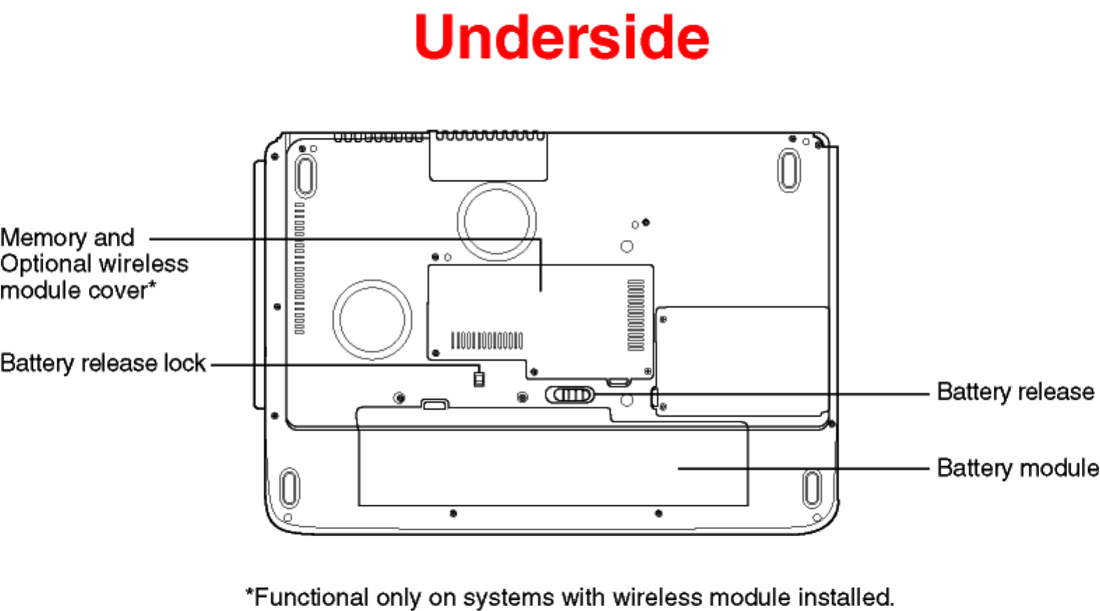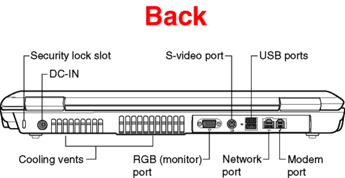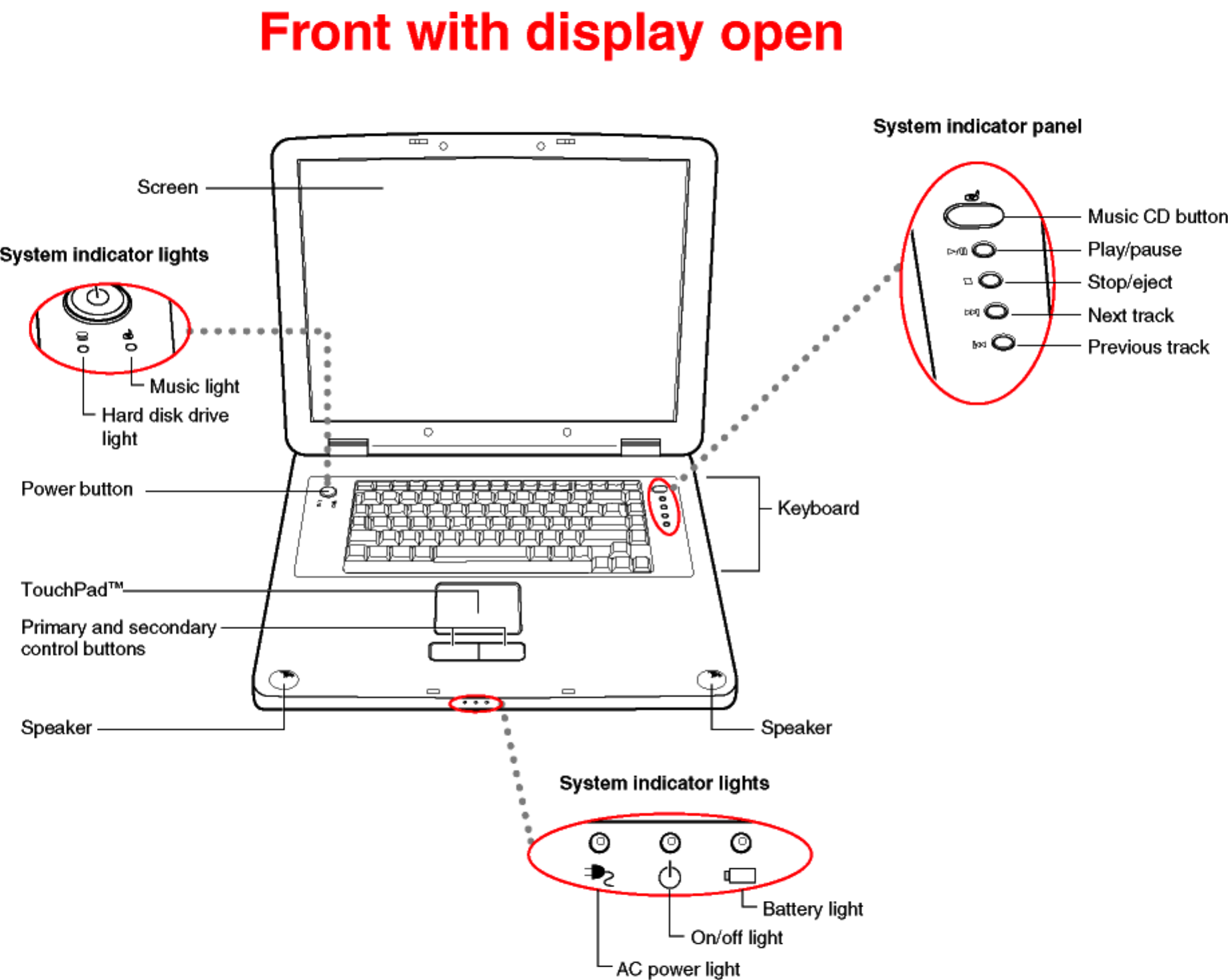 • LED Indicators: DC-In, Power, Primary Battery, Hard Drive,