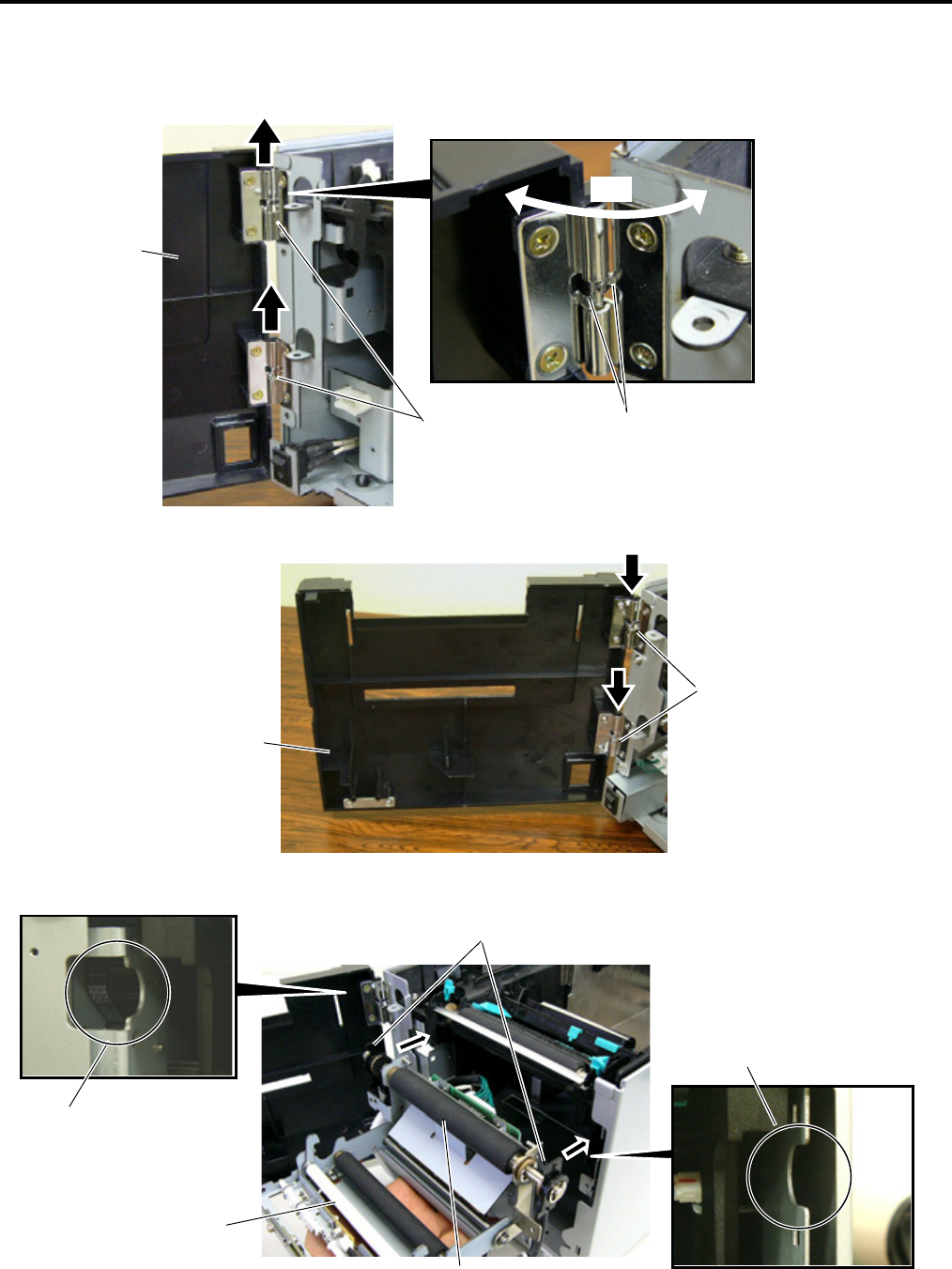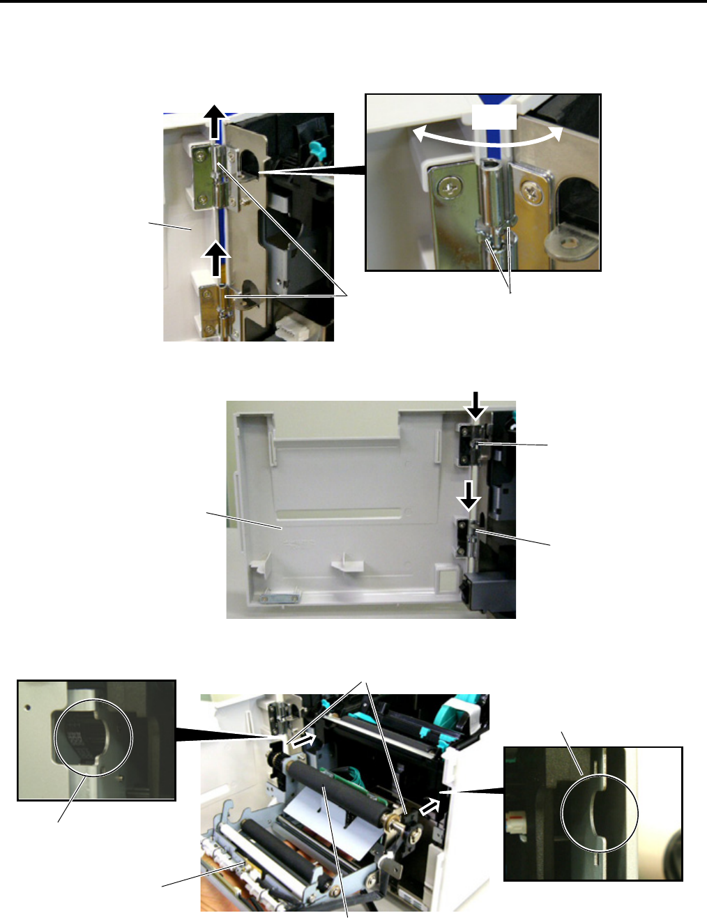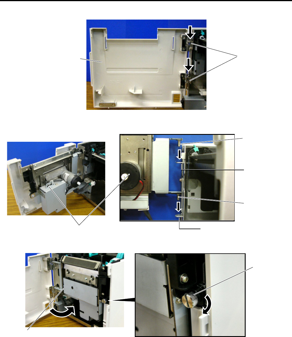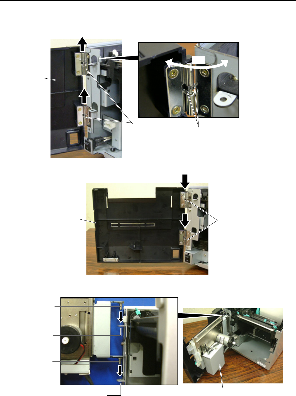 4. Fit the Cutter Unit to the front of the printer by inserting the Hinge Pins into the Hinge Pin Holes.