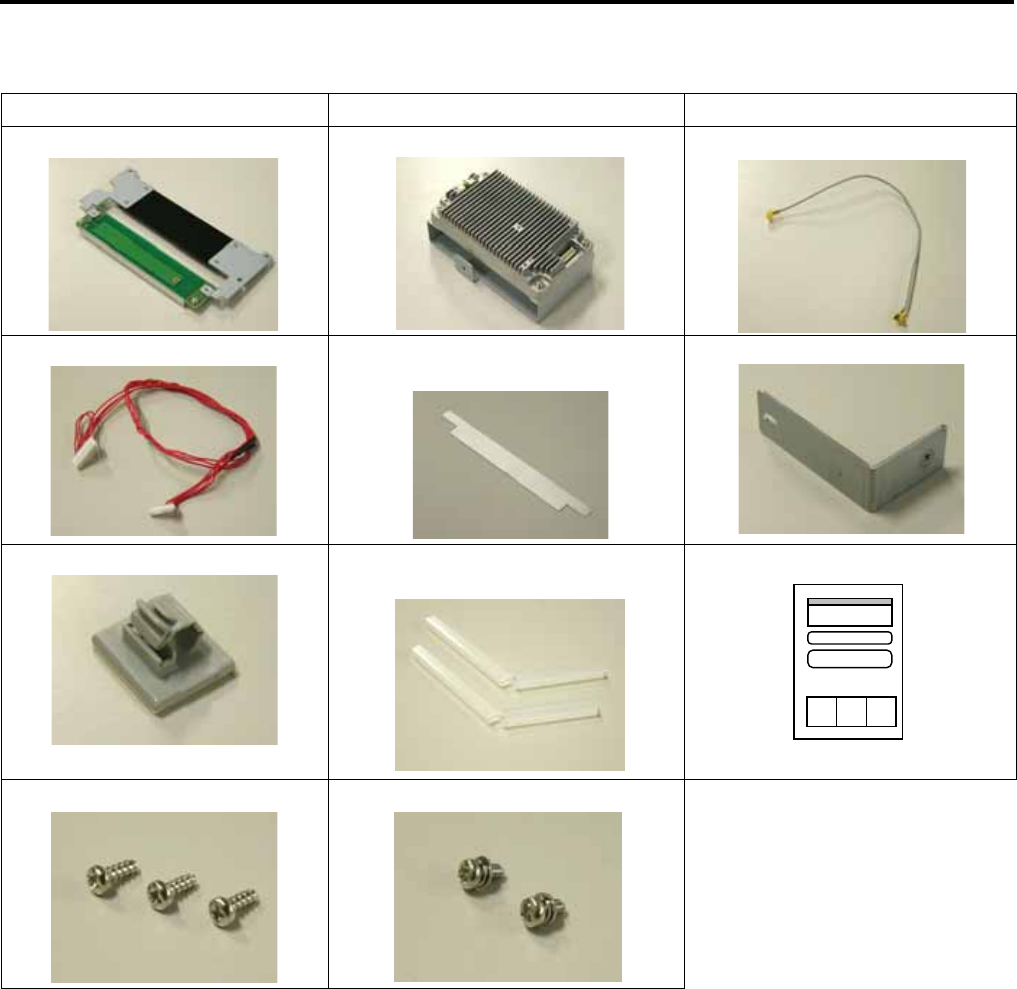 The following parts are supplied with the kit. Make sure you have all items shown below.