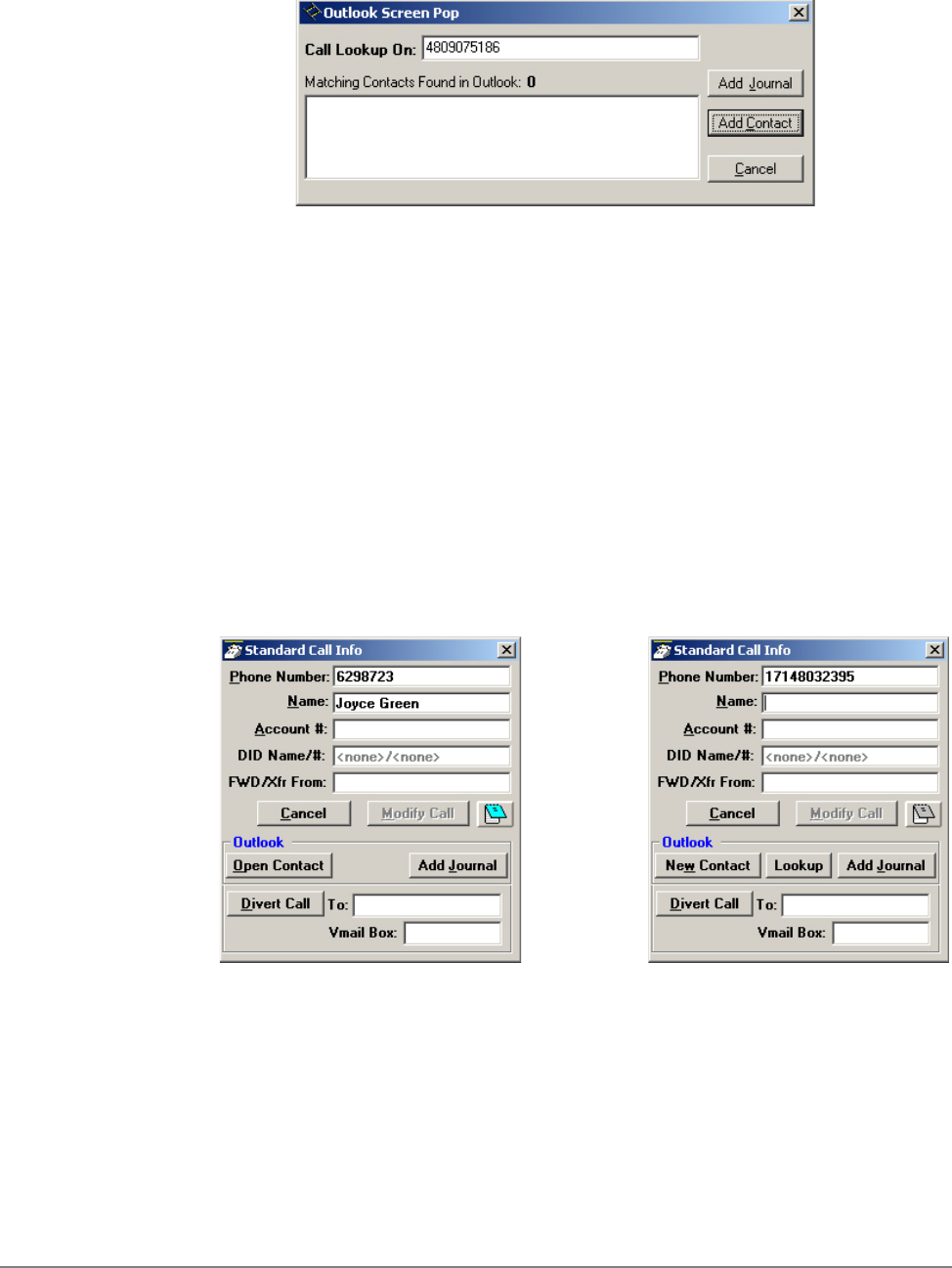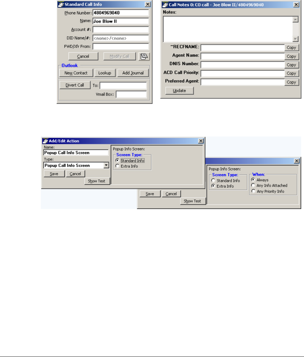 popup call info, 139