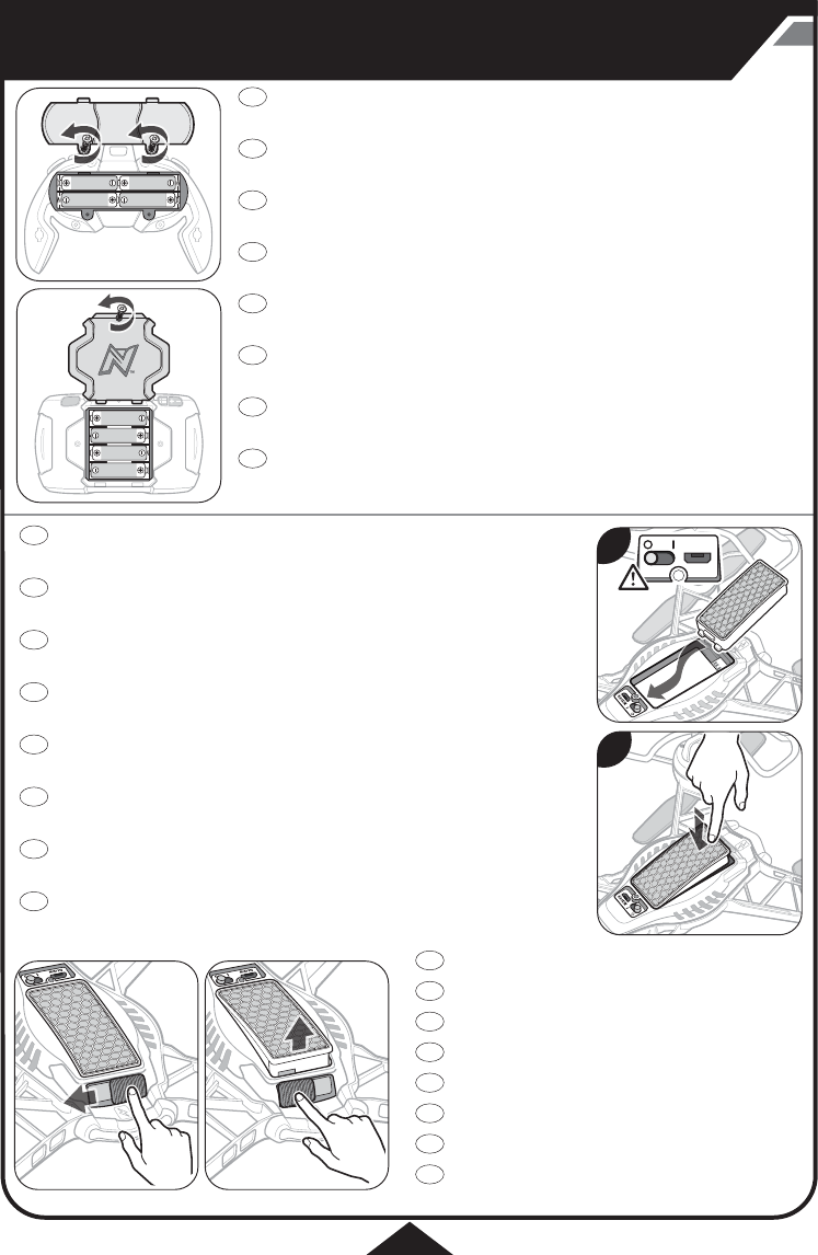 • Slide the battery release tab to the left to disengage the battery from the drone.